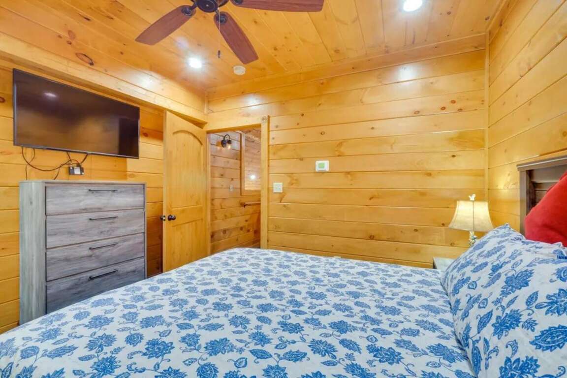 Bask in comfort while enjoying the widespread, panoramic beauty of The Great Smoky Mountains while staying in "Sensational Views". This luxurious Gatlinburg cabin rental with 4 Bedrooms and 4 bathrooms that is the perfect lodging for anyone who is looking to getaway from the city life. The Hot tub sits perfectly with 180 degree views of vast rolling mountains and unwind your mind or you can also watch a TV from the outside.