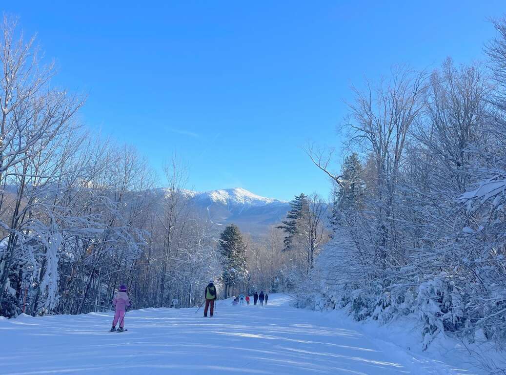 Located near the beginner ski slopes of Bretton Woods, this luxurious vacation rental boasts three bedrooms, accommodating up to six guests comfortably. The interior design exudes sophistication with carefully curated furniture arrangement that maximizes space and functionality. Cozy lighting fixtures create a warm ambiance throughout, perfect for unwinding after a day of outdoor adventures. Guests can enjoy stunning mountain views from various vantage points within the rental, adding a touch of serenity to the experience. Whether lounging in the spacious living area or preparing meals in the fully stocked kitchen, every corner of this rental is designed to provide a sense of freedom and relaxation amidst the beauty of Bretton Woods.