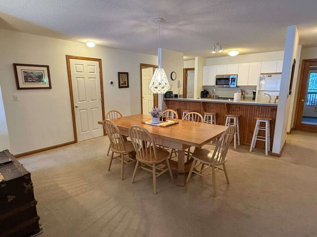 The room configuration of this cozy 3-bedroom condo at 51 Stickney Circle Unit 27 in Bretton Woods, New Hampshire, offers a comfortable and well-appointed layout for guests. Bedroom 1 features a luxurious king bed, a private bath, and slider access to the shared deck, providing a cozy retreat. Bedroom 2 includes a queen bed, while Bedroom 3 offers two twin beds, perfect for families or groups of friends. The accommodation provides various bedding options to suit different preferences, ensuring a restful night's sleep for all guests. With sleeping arrangements designed to cater to a diverse range of needs, this condo is ideal for accommodating up to 6 guests in a relaxing and inviting setting.