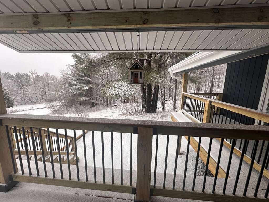Winter in the White Mountains can be beautiful—and occasionally intense! The driveway is plowed after about 3 inches of snow (typical for NH), and once accumulation exceeds a foot, our plow team also clears our deck. Since the living and dining areas overlook the deck, you might see them early in the morning after a snowy night. Shovels are also provided if you prefer to clear a bit on your own. A bucket of salt is also provided near the entrance for guests to use if the stairs get icy. Cars and mid-size SUVs can park below the deck with direct access to the house from the ground level, so there’s no need to take the exterior stairs during snowy weather. <br />