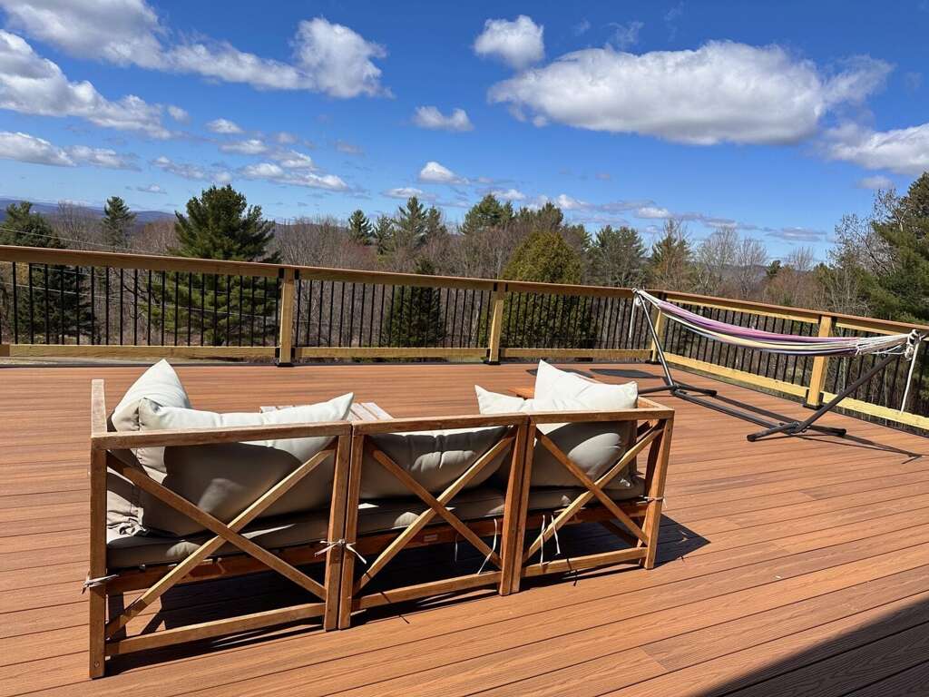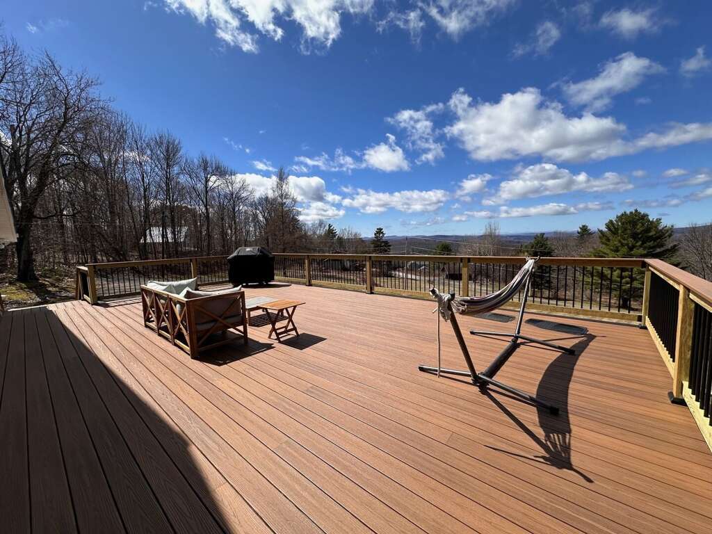 The 2t luxury house in Bethlehem, NH provides a perfect vacation rental experience with its 3 spacious bedrooms, a hot tub, and an amazing mountain view.