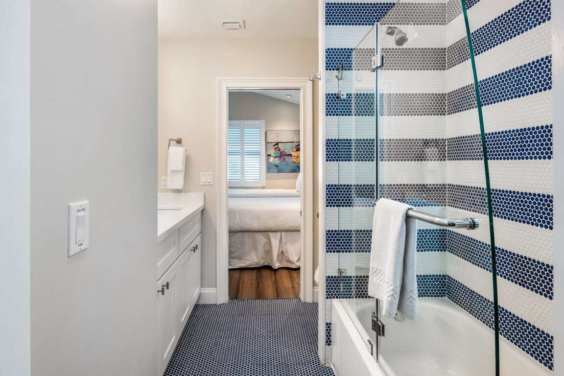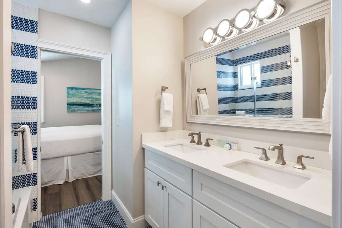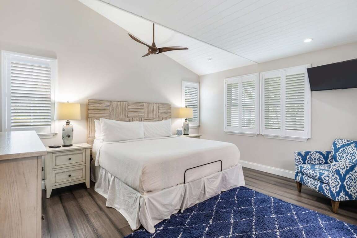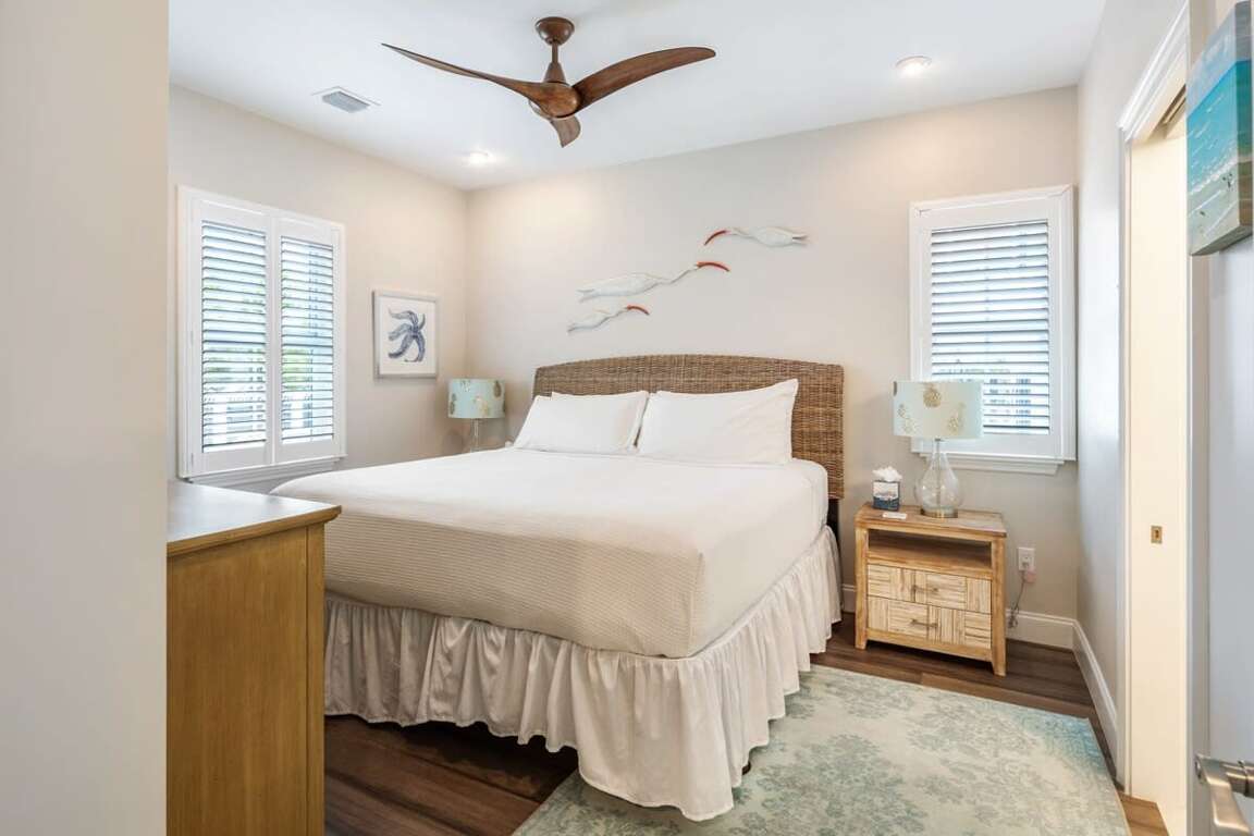 Two master suites include king size beds and en suite baths. While the Jack and Jill bathroom splits two additional bedrooms, one with a king size bed the other with two twin beds. This home sleeps up to eight guests and it can be rented for a 28-night minimum in the best tropical location.