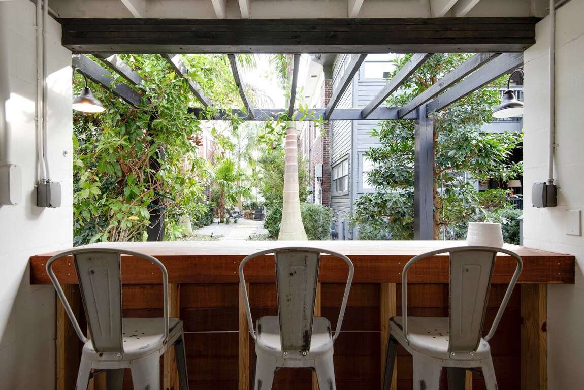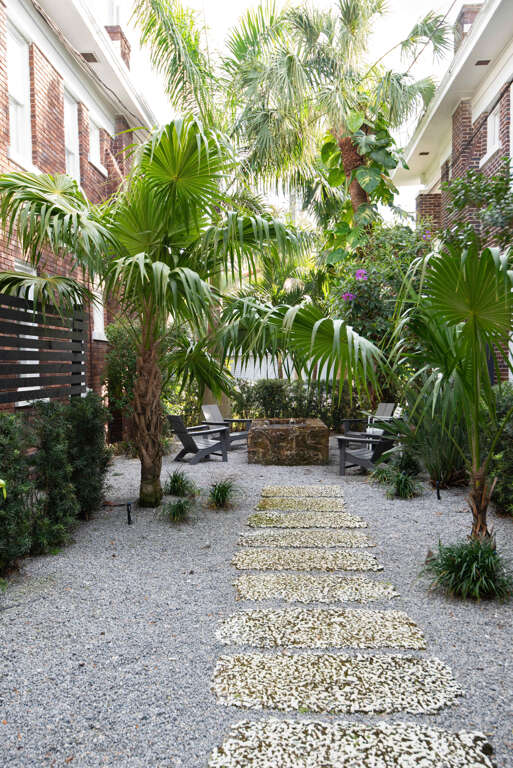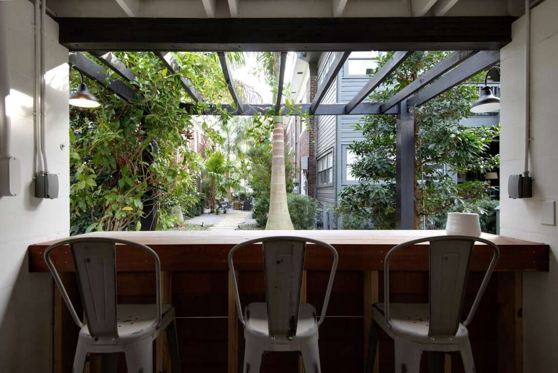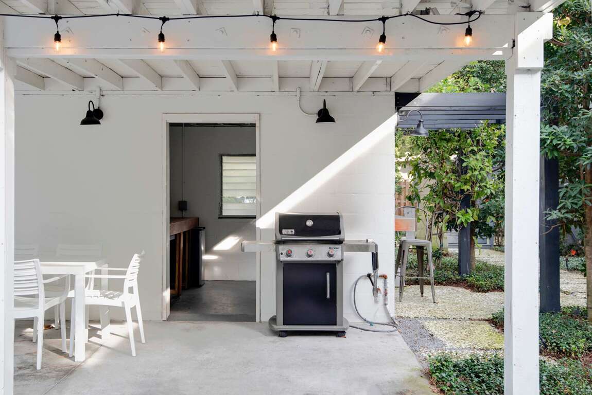 Downstairs in the rear of the building is a lush garden with a shared common area featuring an outdoor grill, outdoor fire pit, and dining table! Feel free to utilize this space during your stay but please be mindful it is shared with other guests and residents.