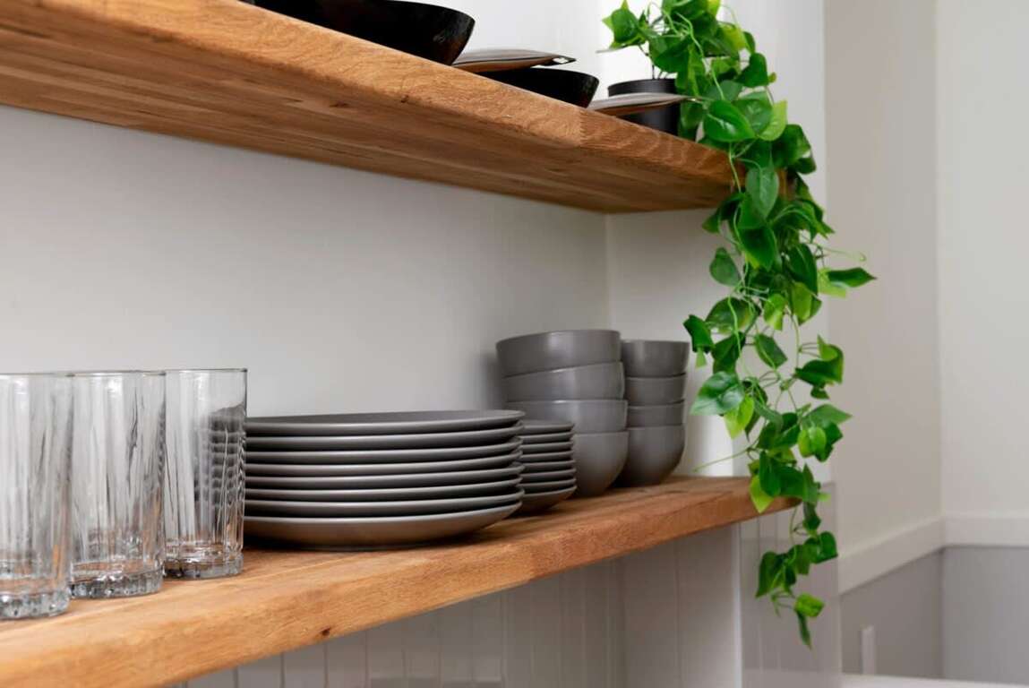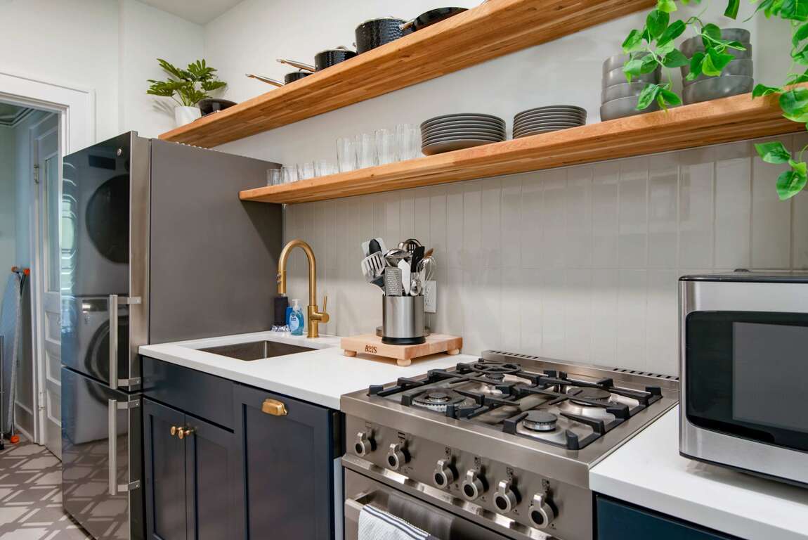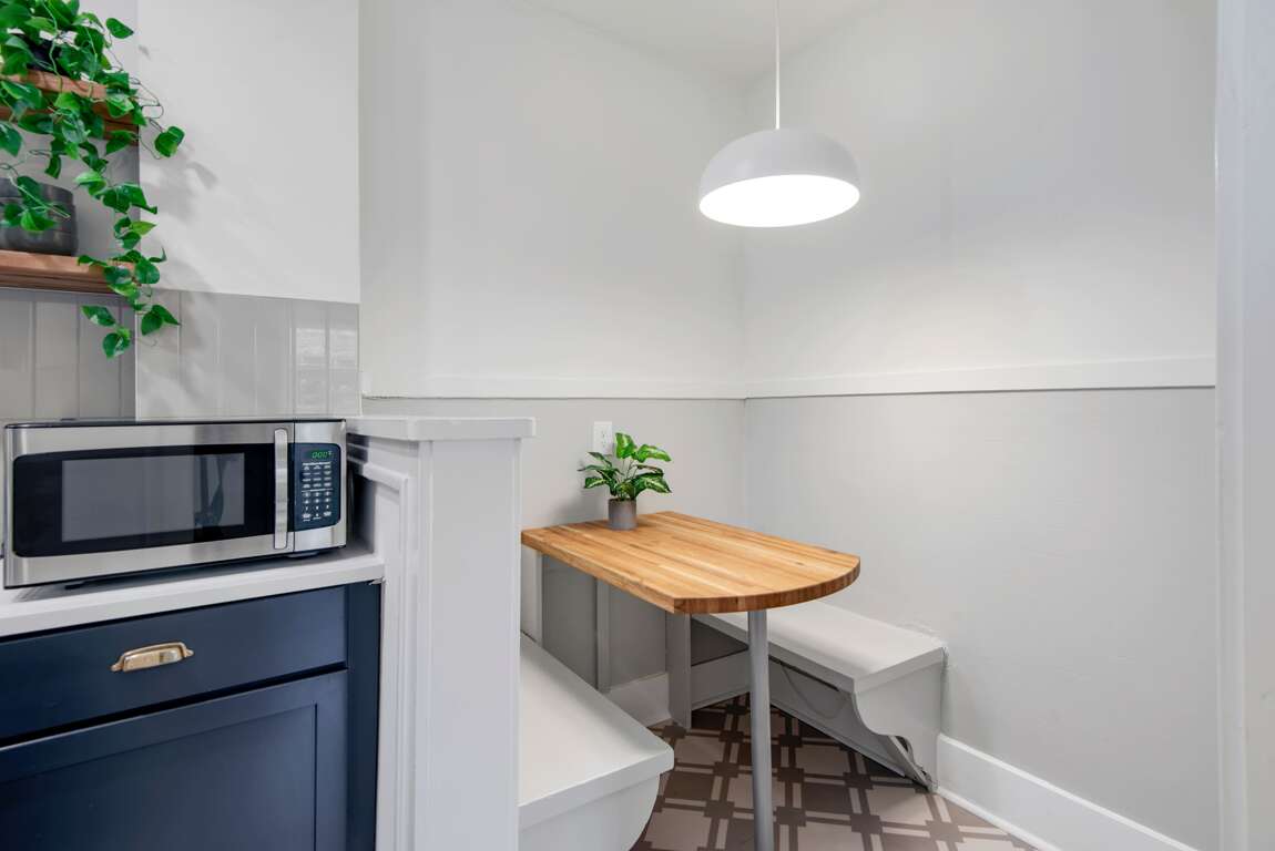 No details were spared in creating the perfect haven in this home! The tastefully upgraded kitchen features an oven, dishwasher, and a fully stocked Keurig coffee machine for your convenience. Gather around and enjoy a meal at the custom-built butcher-block dining nook! There is also a washer and dryer complete with a starter supply of laundry supplies for your use throughout your stay. Enjoy free high-speed Wi-Fi and a smart TV with access to YouTube TV and all your favorite streaming apps!