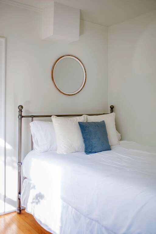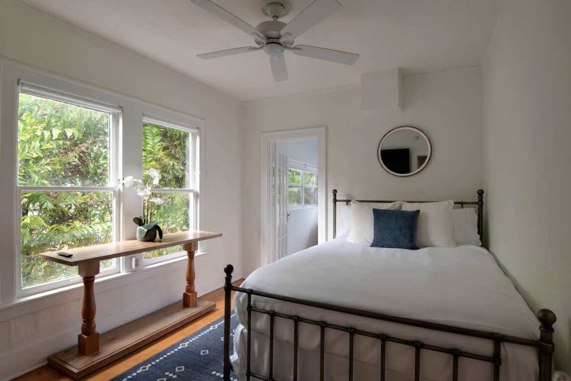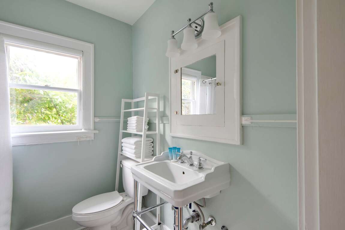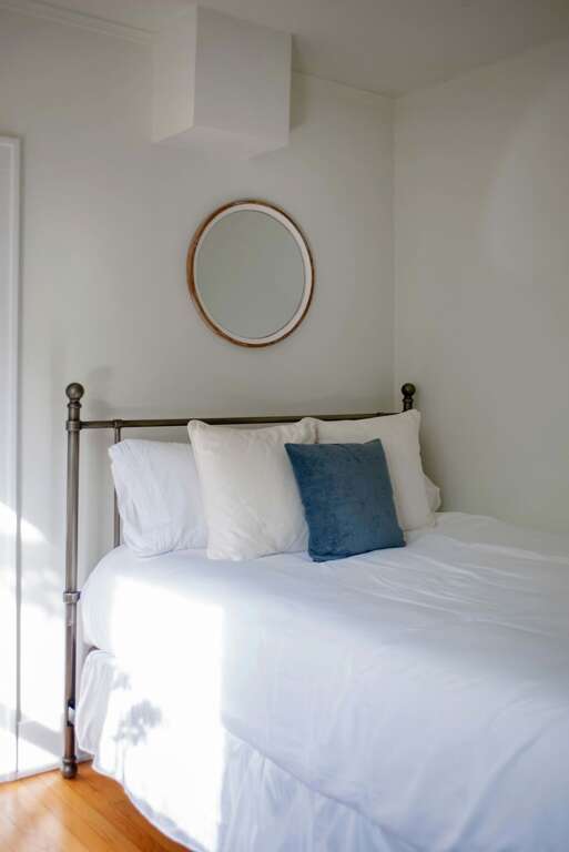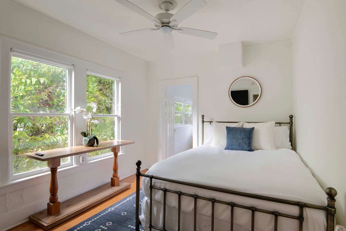 Sleeping up to 6 guests, this flat is perfect to spread out and make yourself at home! The accommodations include one bathroom, a queen-sized bed in the primary bedroom, a full/double bed in the back sunroom, and a queen-sized pull-out couch in the living area. Please note the full bedroom is accessed by walking through the queen bedroom. The bathroom features an above-ground garden tub and complimentary toiletries for you to use throughout your stay!