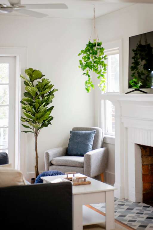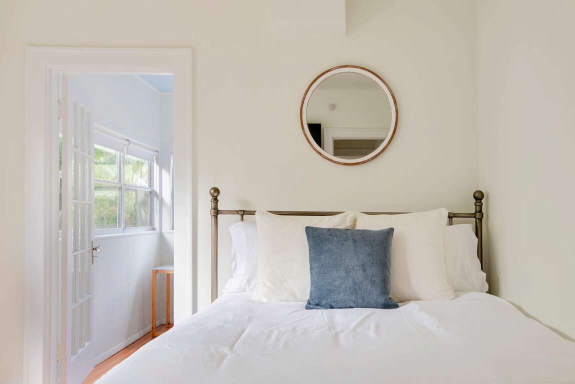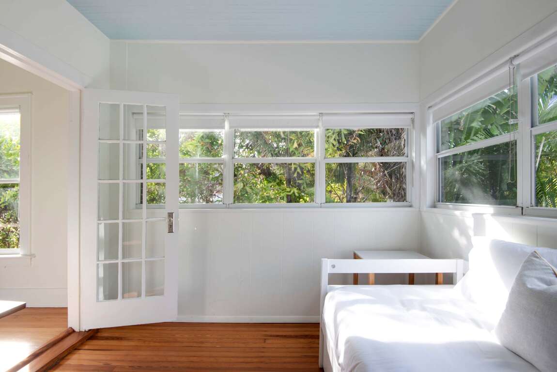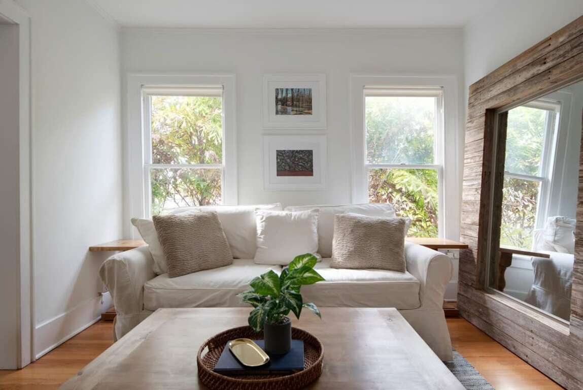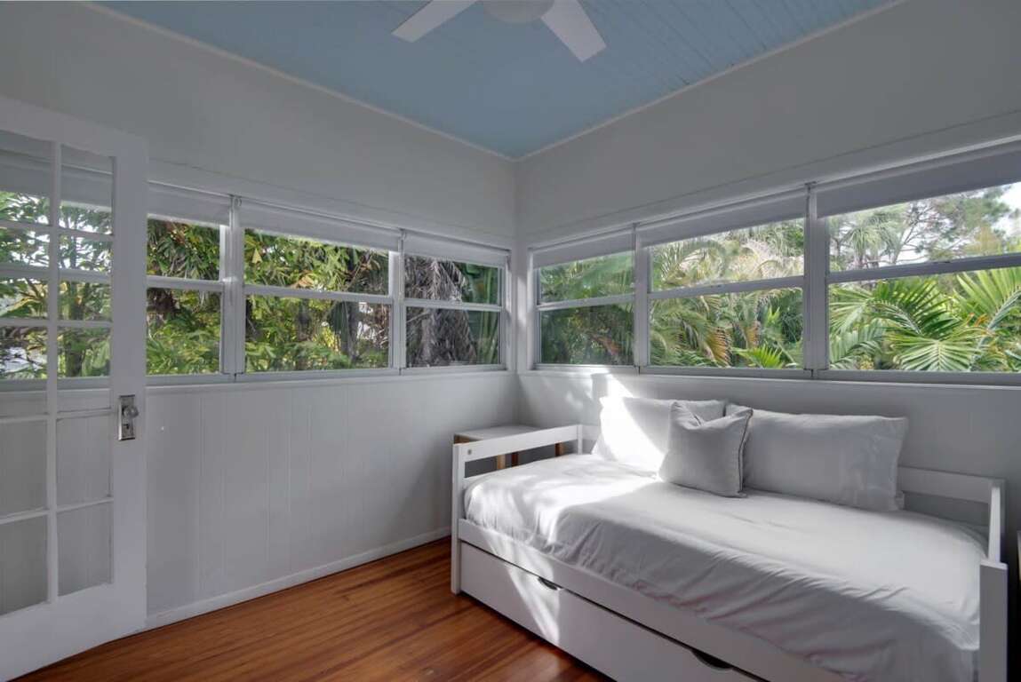 Sleeping up to 6 guests, this flat is perfect to spread out and make yourself at home! The accommodations include one bathroom, a queen-sized bed in the primary bedroom, a full/double bed in the back sunroom, and a queen-sized pull-out couch in the living area. Please note the full bedroom is accessed by walking through the queen bedroom. The bathroom features an above-ground garden tub and complimentary toiletries for you to use throughout your stay!