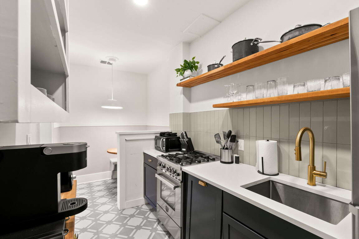 Downstairs in the rear of the building is a lush garden with a shared common area featuring an outdoor grill, outdoor fire pit and dining table! Feel free to utilize this space during your stay but please be mindful it is shared with other guests and residents.