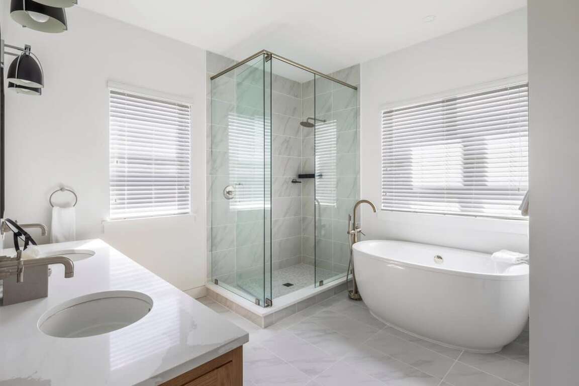 Bedroom 1: King bed with a walk-in closet, double vanity en-suite bathroom & balcony access