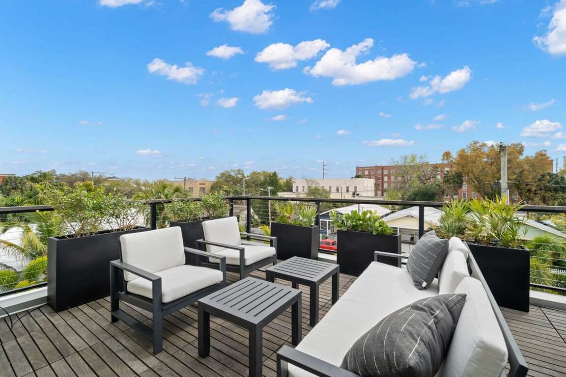 On the top floor lies the stylish lounge area with a flat-screen Smart TV, a wet bar, and a mini fridge - the perfect place to enjoy at-home entertainment with friends or to catch up on some much-needed R & R. Just off the 3rd-floor lounge lies your very own private sundeck, where you can take in amazing views of the downtown Tampa skyline and the surrounding neighborhood.