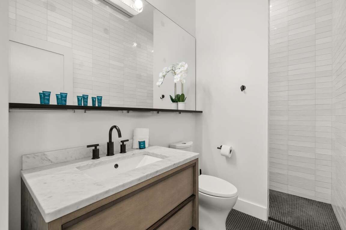 The Queen bedrooms are located on the 1st floor of the home and share a full bathroom, directly next to the laundry room. Head up to the 2nd floor and you will find a lavish Master Bedroom with a plush King bed, large flat screen TV, bedside lighting, full-length mirror, tons of closet space, and en suite bathroom.