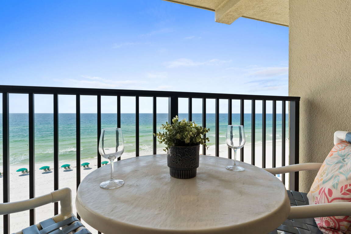Condo vacation rental on Okaloosa Island in Fort Walton Beach with a 1-bedroom layout that sleeps 6, plus a 5th-floor balcony, pool, and beach access.