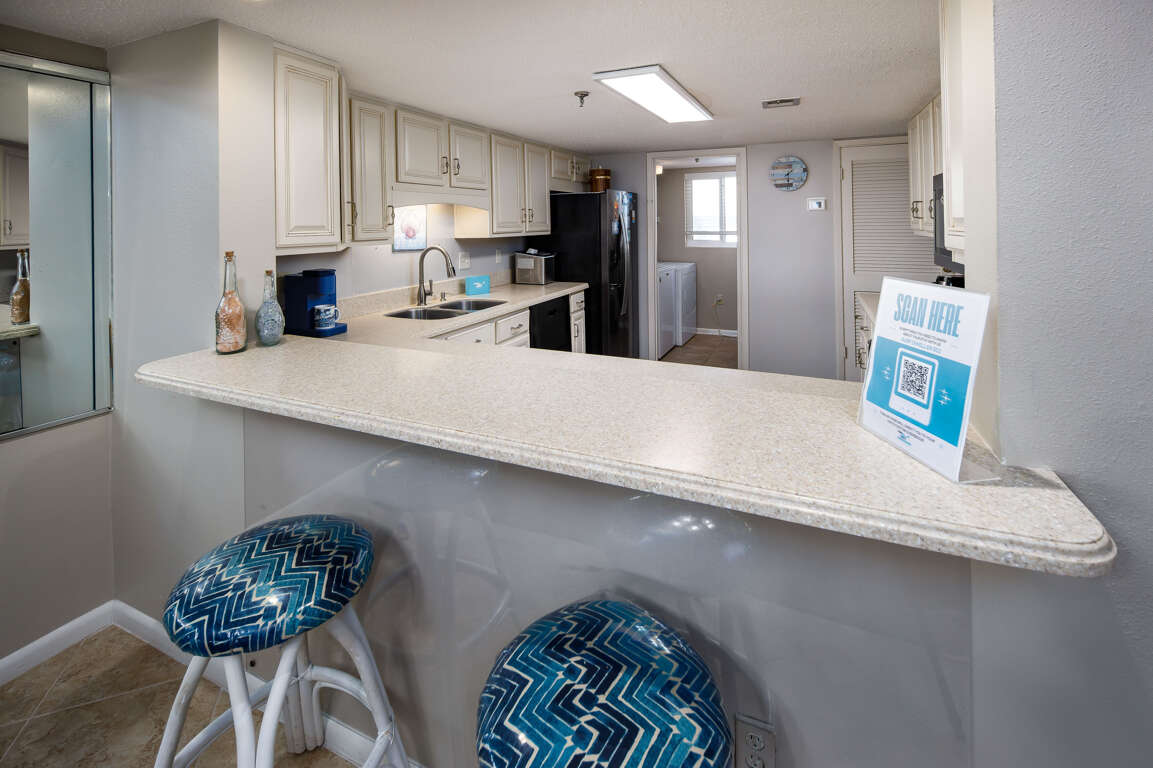 We recently stayed in this beautiful condo for a girl's getaway. We had plenty of room for the 5 of us and we enjoyed the accomodations. The kitchen was very spacious and we loved spending time on the large balcony.There was enough outdoor furniture for all of us to sit and enjoy the ocean view. We did have a bit of difficulty trying to figure out how the flush the toilets but everything else was great. We have already booked this condo again for summer 2023.