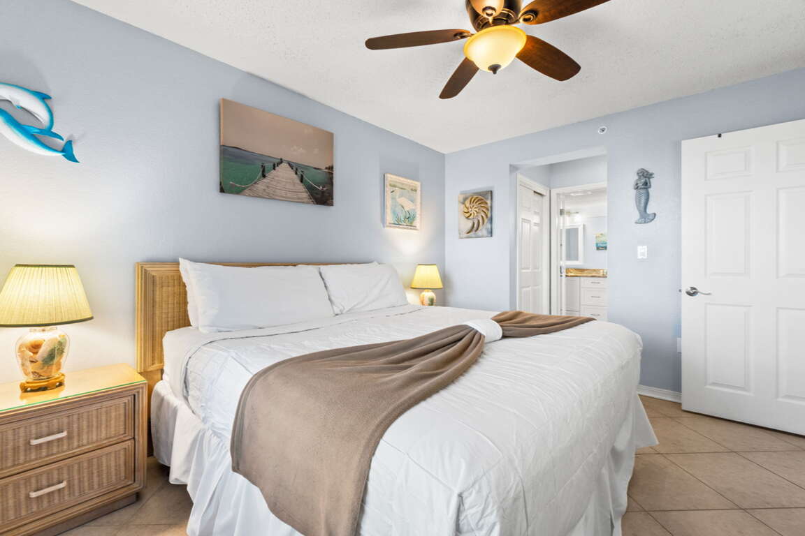 Islander Beach Resorts is located on Okaloosa Island in Fort Walton Beach. This seven story condo is situated directly on the Gulf of Mexico. Unit 4005 is on the fourth floor a quick trip across the hall from the elevator convenience factor! This great two bedroom two bathroom condo has a family friendly floorplan with the two bedrooms welcoming each visitor at the entryway on either side of the unit. Each bedroom has its own private bathroom and the full-size kitchen, dining area, and family rooms are down the hall with super convenient access to your private Gulf front balcony. The sliding glass balcony doors provide the quintessential backdrop to your beach vacation. The VIEWS of the Gulf of Mexico are ENDLESS!