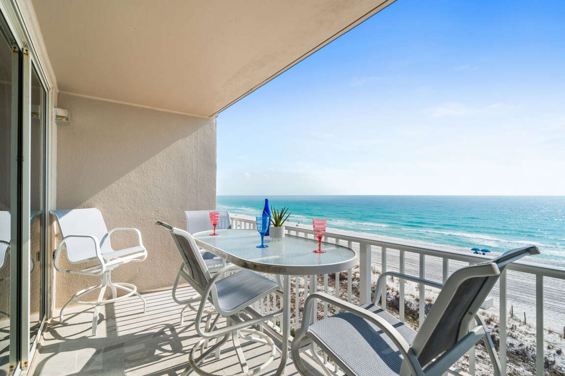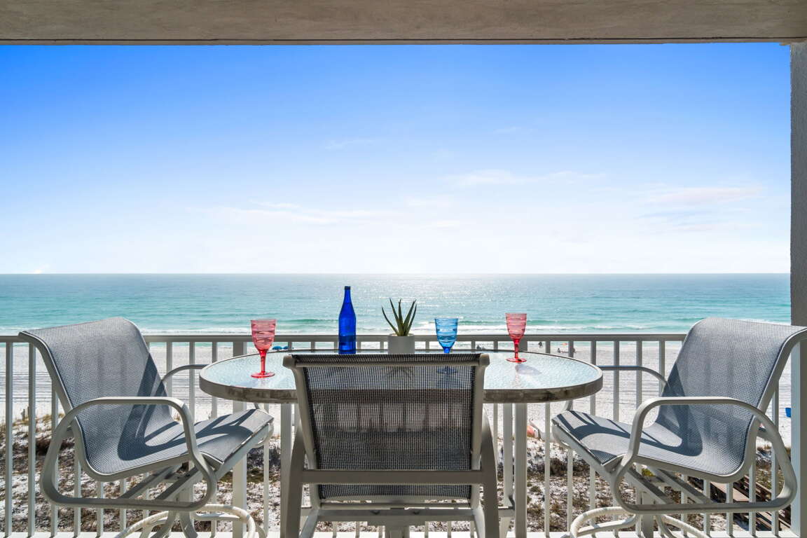 Beachfront condo vacation rental on Okaloosa Island in Fort Walton Beach with 2 bedrooms, sleeps 6, in-unit washer/dryer, and direct boardwalk beach access.