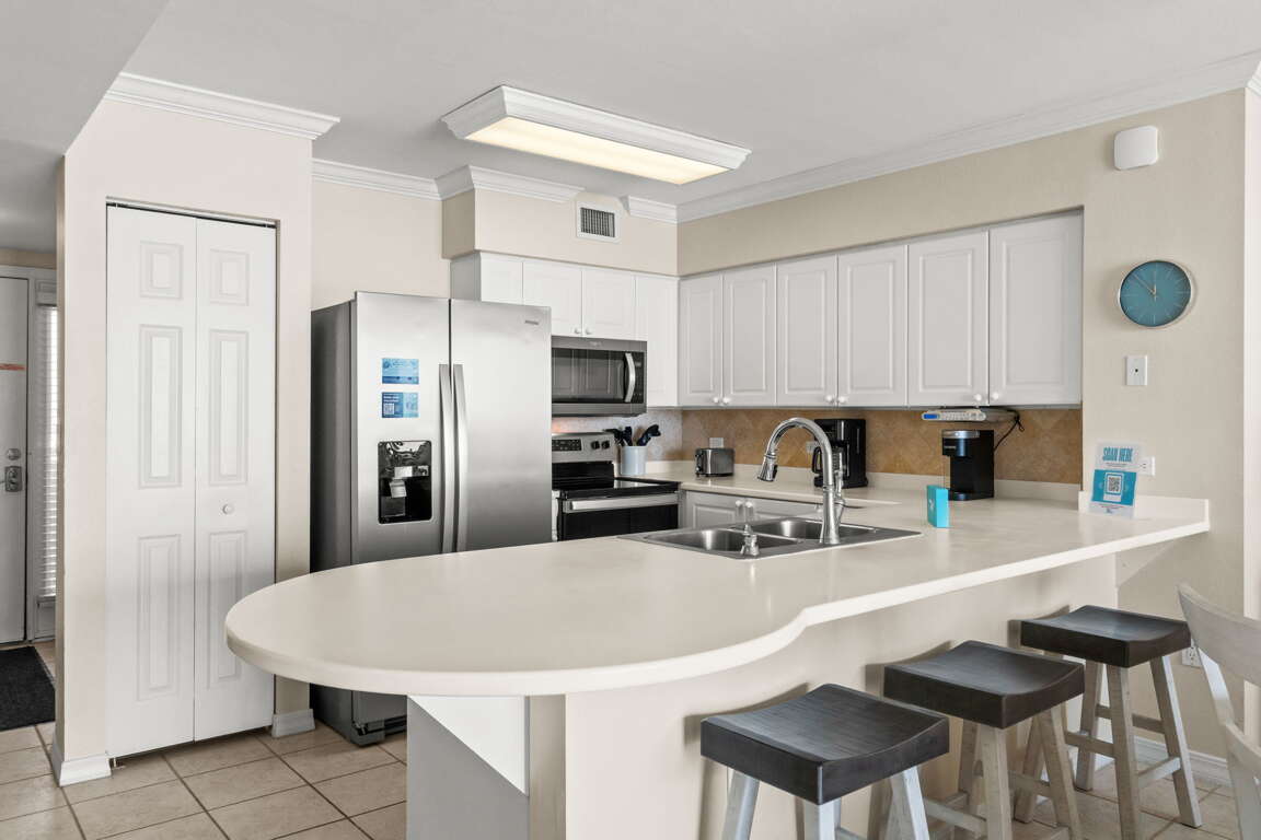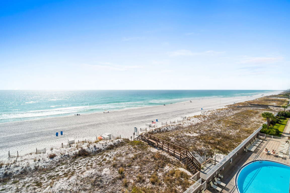 Wonderful location on the truly beautiful white powder sand beaches of the emerald waters coast. Great beach walk to the pier. The rental was nicely laid out and kitchen was well appointed. Nice pool and hot tub, never seemed crowded. Covered garage parking, close to elevator. Overall great experience. We will go again.