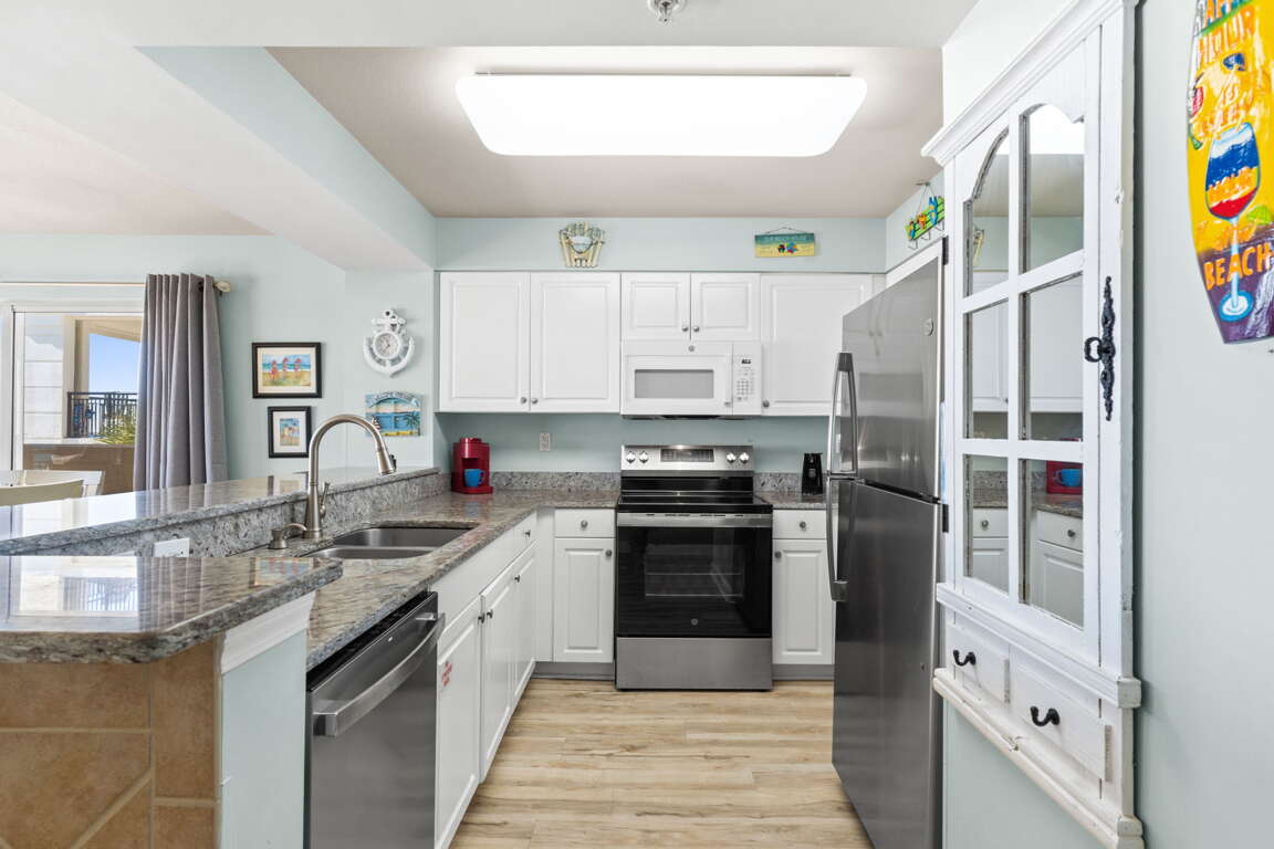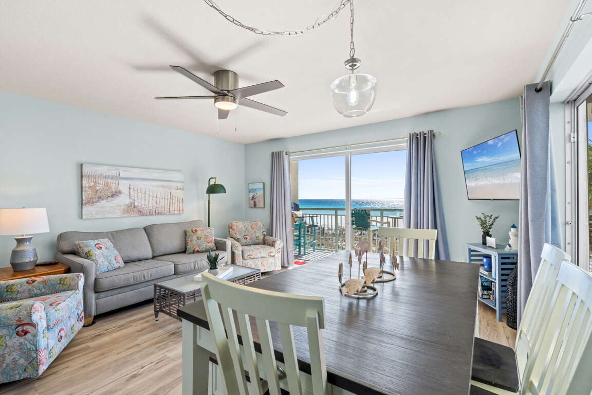 Again, this was our fifth trip to this condo and it is always very clean and has the BEST view of the beach plus we have seen Dauphin on every visit from the balcony. The bathrooms are well stocked and up to date. New granite tops in kitchen and bathrooms.