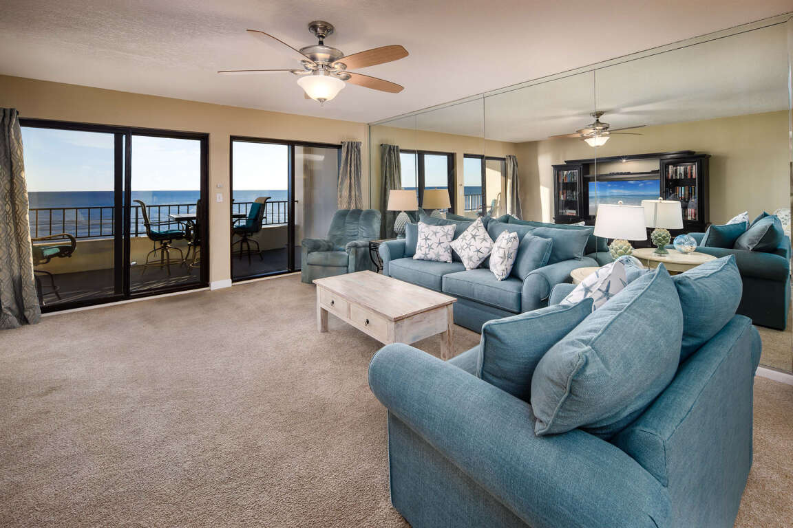 Beachfront condo rental in Fort Walton Beach with 2 bedrooms, sleeps 8 guests, a private Gulf-front balcony, stocked kitchen, WiFi, and washer/dryer.