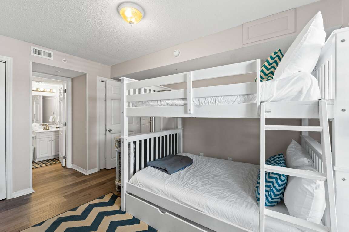 THE SLEEPING ARRANGEMENTS IN THIS UNIT ARE AS FOLLOWS: MASTER BEDROOM - 1 KING BED, 2ND BEDROOM - 1 KING BED, 3RD BEDROOM - 1 SET OF FULL SIZE BUNK BEDS. SLEEPER SOFA IN THE LIVING ROOM. THIS UNIT SLEEPS 8.