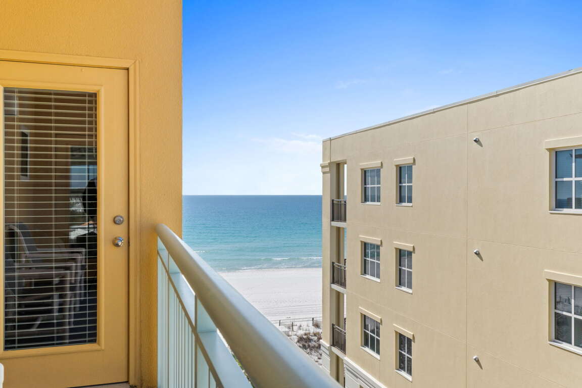 Corner beachfront condo rental on Okaloosa Island in Fort Walton Beach, a vacation rental with Gulf views, 2 king beds, beach service, and a heated pool.