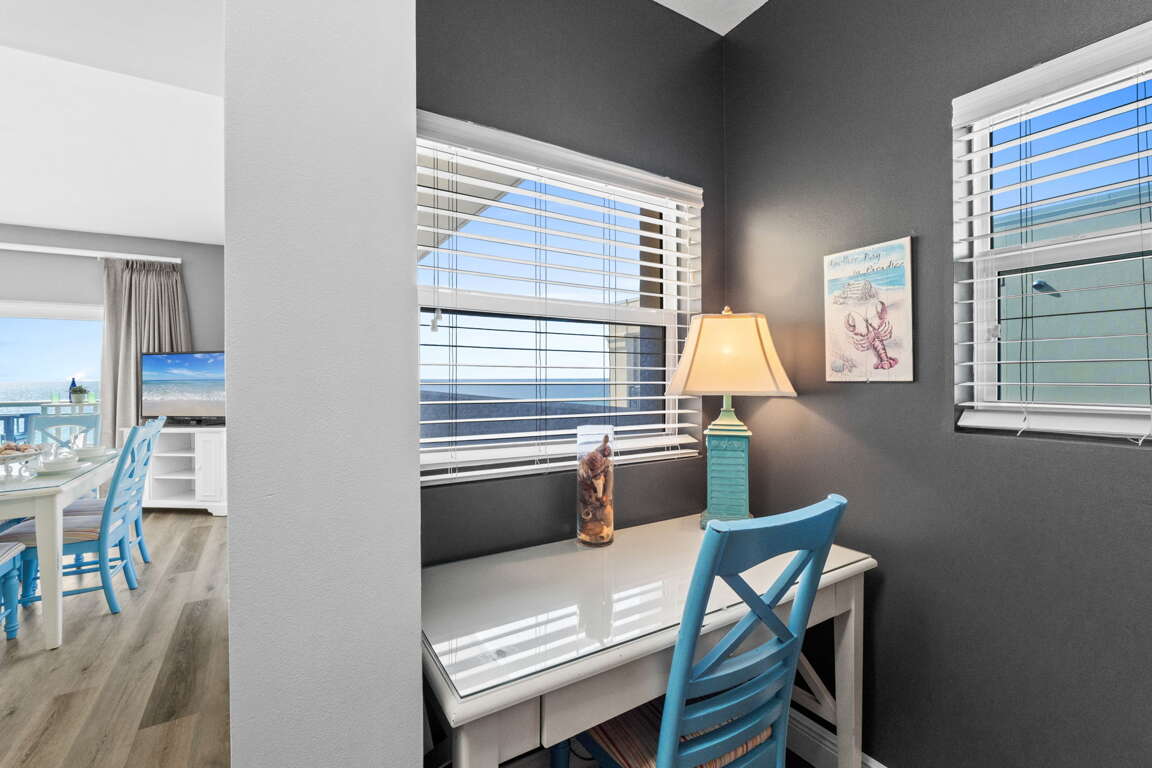 FREE PARKING AND FREE WIFI!!! Welcome to Pelican Isle unit 613, a popular condo located in the heart of Okaloosa Island. This cozy unit is perfect for a group of friends and family looking for a comfortable and convenient home base during their beach vacation. Come enjoy this breathtaking view of the Gulf of Mexico and miles of beaches, with white sands extending past the Okaloosa Pier. This corner beachfront vacation condo will comfortably sleep up to six people, and has everything you need for a fabulous beach getaway. Wake up each day to the sound of waves gently falling against the shore, and let the sound lure you downstairs. This unit has a cozy corner to read with a large desk and is ready for you to get a little work done on your laptop with great Wi-Fi. It's fully equipped with modern amenities, including 2 king-sized beds, kitchenette, and smart TV's, so you can fully unwind and enjoy your vacation. Just seconds to the beautiful beach with complimentary 2 Chairs and umbrella (Mar 1 -Oct 31) for a beautiful beachy day! Take a short walk down the beach boardwalk in Fort Walton Beach and sink your feet in the sand. Enjoy access to the swimming pool, gym, and a barbeque grilling area and take advantage of the convenient location on Okaloosa Island with various restaurants and bars only minutes away. Experience the best of Florida with a short drive to the historic Fort Walton Beach downtown area, which offers various attractions, landmarks, and places of interest. Book your stay now and let this unit be your primary choice when visiting Fort Walton Beach!