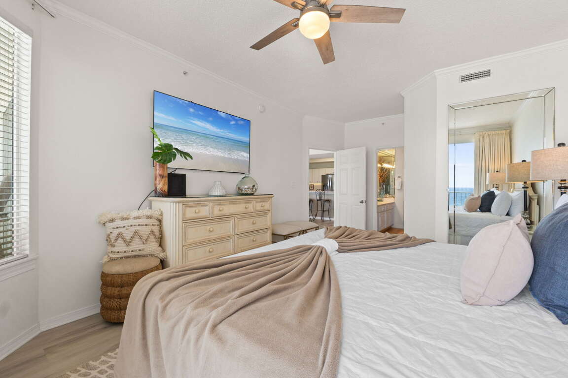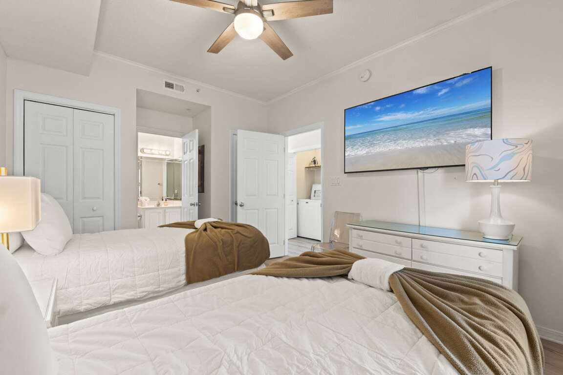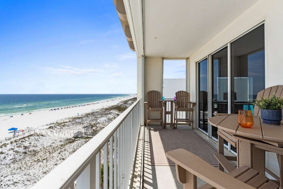 Gulf Dunes 617 - Sand Dollar Daze! Welcome to your dream beach getaway on the beautiful Gulf of Mexico! This spacious 3-bedroom, 3-bathroom top-floor corner unit offers stunning panoramic views, ultimate privacy, and all the comforts of home—perfect for families or groups looking to relax in style. With two king suites, a twin bedroom with two beds, and a sleeper sofa in the living room, the unit comfortably sleeps up to 8 guests. Each bedroom has its own private bathroom, providing plenty of space and convenience for everyone.