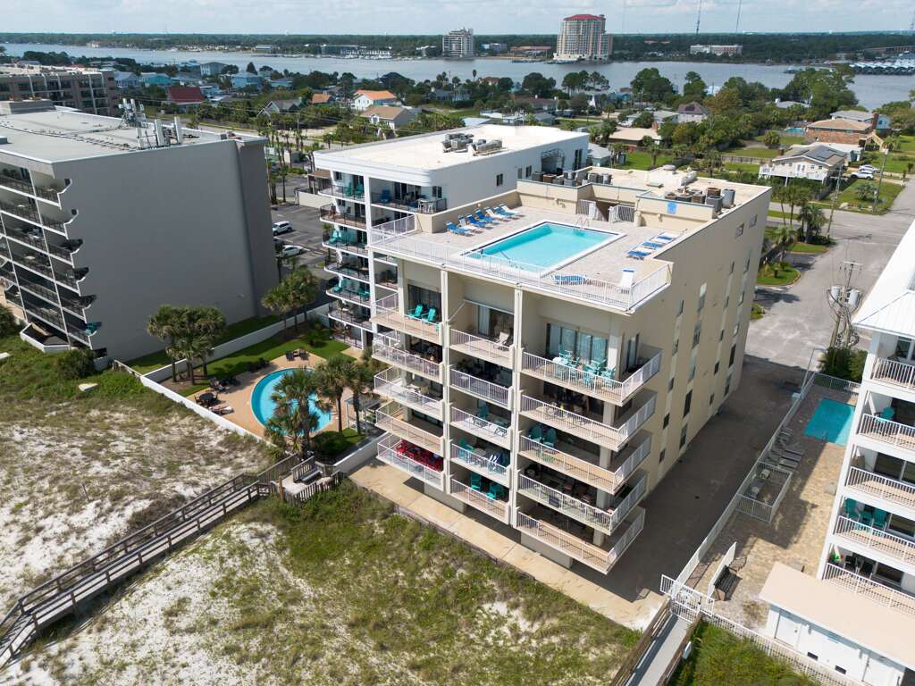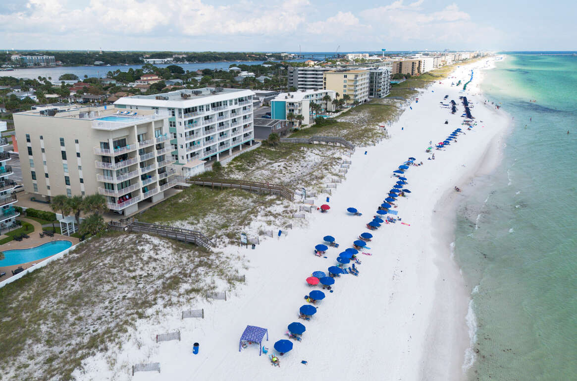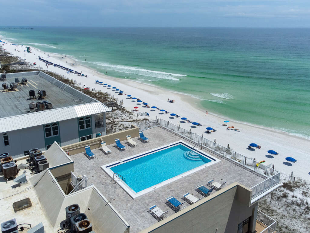 Gulfside Condominiums is close to Fort Walton’s shopping and dining and a mere ten minutes from Destin, it has a rooftop pool area that provides one of the best views on Okaloosa Island. Guests can get to the beach from the boardwalk at the base of the parking area and can use a barbeque grill that is located along this boardwalk as well.
