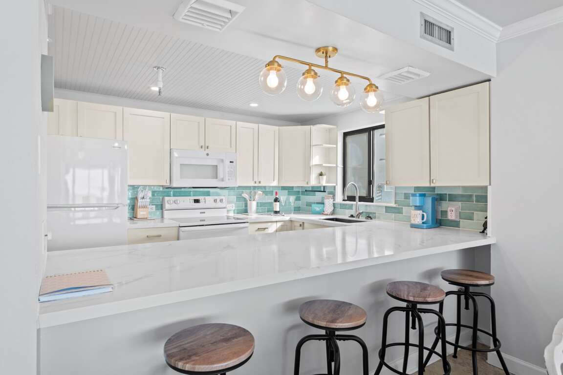 This stunning 2-bedroom, 2-bathroom beachfront condo offers the ultimate coastal vacation experience. Located directly on the Gulf of Mexico, this modern retreat boasts breathtaking Gulf-front views, making it the perfect place to relax and unwind. The spacious open-concept living area is filled with natural light, creating a warm and inviting atmosphere. The chef’s kitchen features high-end appliances and sleek finishes, perfect for preparing meals while enjoying the scenic views.