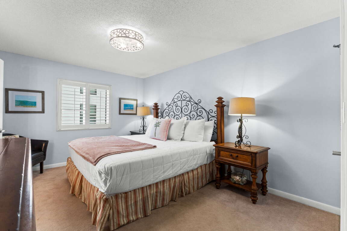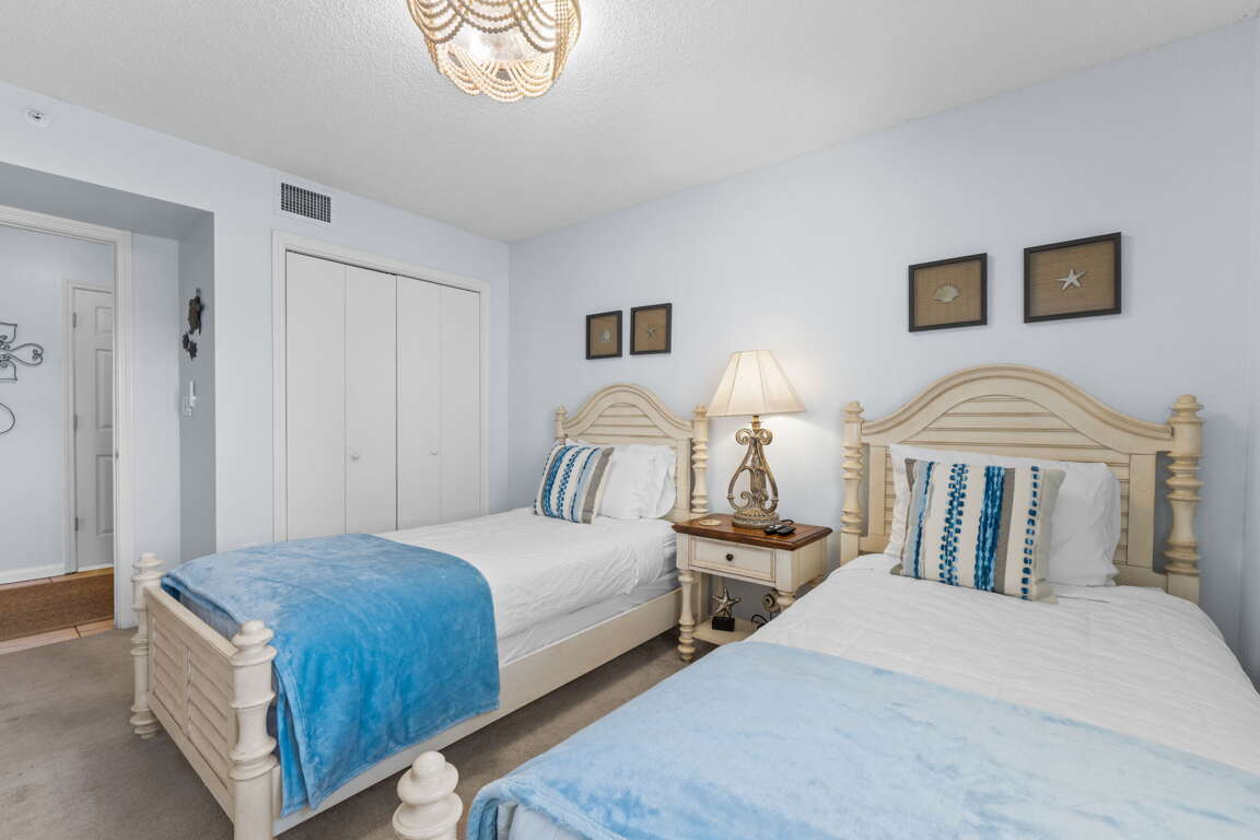 The sleeping arrangements in this unit are as follows: master bedroom - 1 king bed, 2nd bedroom - 2 twin bed. Sleeper sofa in the living room. This unit sleeps 6.