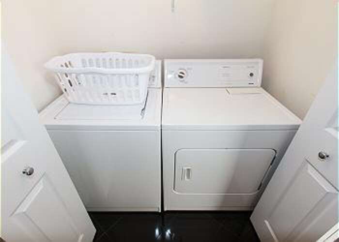 The unit offers all the comforts of home, including private bedrooms and bathrooms, plus an in-unit washer and dryer.