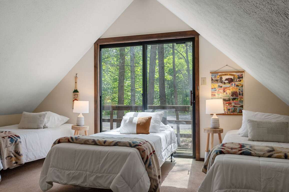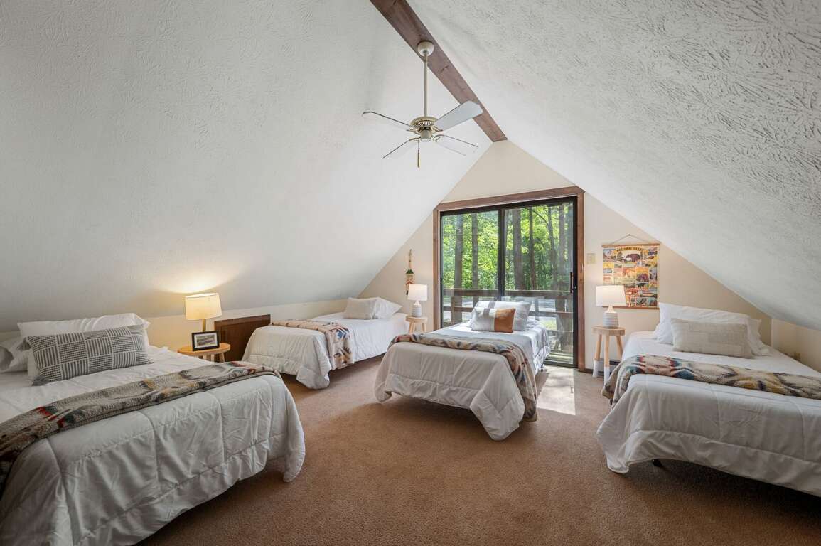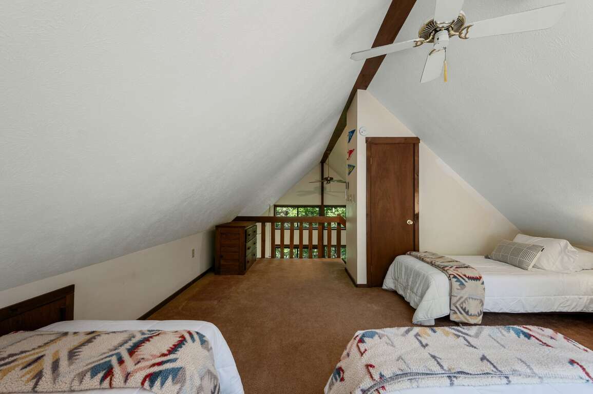Head upstairs to a spacious loft with four twin beds that overlooks the great room's huge windows, with sliding glass door access to it's own balcony. <br />