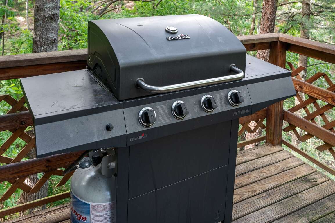 This property has a propane gas grill the main level deck and a Solo Stove Bonfire fire pit area near the cul-de-sac. It does NOT have an outdoor hot tub.<br />