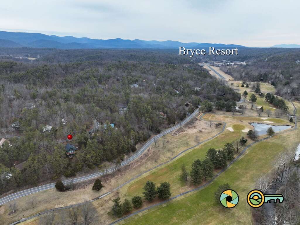This classic mountain chalet is minutes to Bryce Resort's lodge & ski/bike lifts, as well as dining in the small town of Basye (Burn Barrel tavern and Pale Fire Brewing). Perched on the mountainside, it has an open view of the Bryce Resort golf course and Bryce Mountain. The great room’s huge glass doors, windows, and deck create the sense being outside, even while cozy inside. Access to the chalet is seven steps down to entry level from the driveway, which makes for quick unpacking and easy return after a hard day of play.<br />