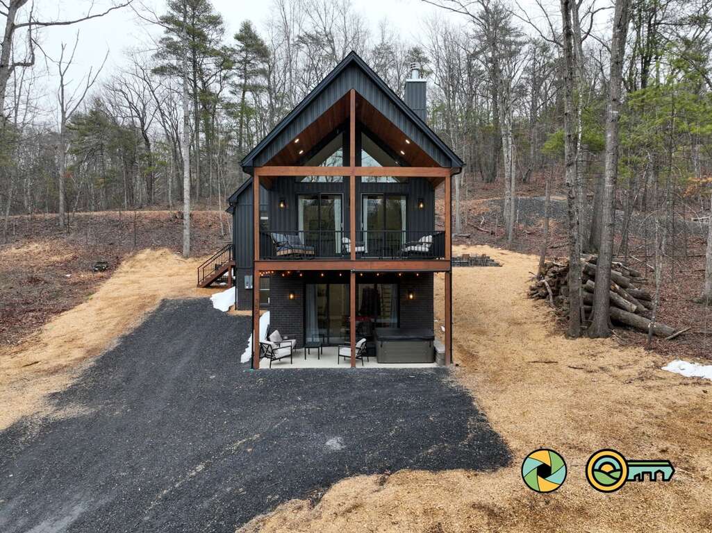 Ridge & Water Manor is named for it's wintertime views of Lake Laura and Great North Mountain's ridge towering 2.000 feet above to the west. With sleeping space for 12 guests in four bedroom suites and a private loft, the Manor has plenty of room to spread out on the main floor living area, lower level game room, double covered decks (lower with hot tub), fire pit area, and covered outdoor grilling station. Public access to Lake Laura is a short 1/2 mile walk. Bryce Resort's lodge (ski/bike/golf) is a mere 3.2 miles and the town of Basye is only 1.5 miles (Community Store/Gas, The Burn Barrel tavern, Pale Fire Brewing, and Smiley's Ice Cream). The large driveway easily accommodates four vehicles and includes an EV charger. Access the home on the left side of the house, up eight steps to the entry door. <br />