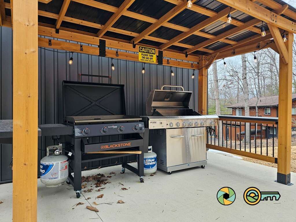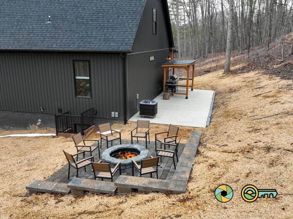 From the lower level patio or main entry door, head around to the back yard where you'll find a covered grilling station with a large gas grill and Blackstone flattop grill. As you're warming up the grills, get a fire going in the custom-built fire pit with seating for eight. <br />