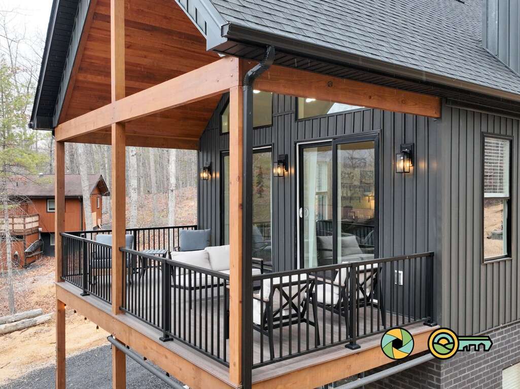 Spacious Basye house vacation rental with four suites plus a loft, game room, covered decks, and a hot tub, near Lake Laura access and Bryce Resort.