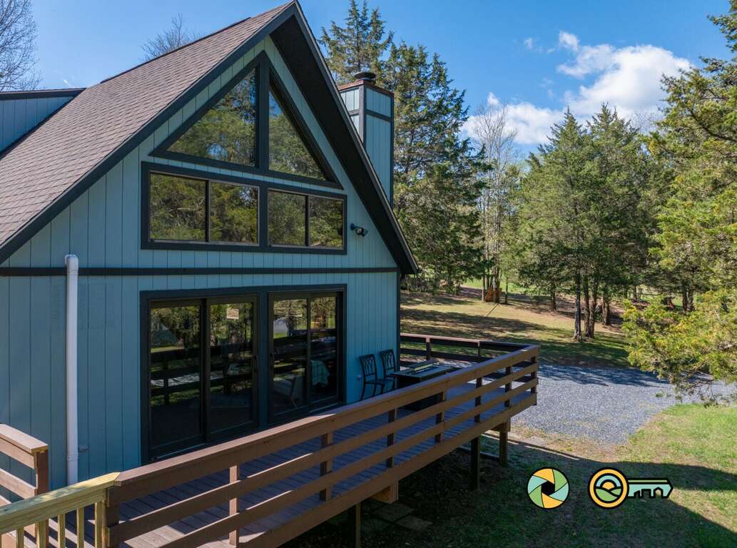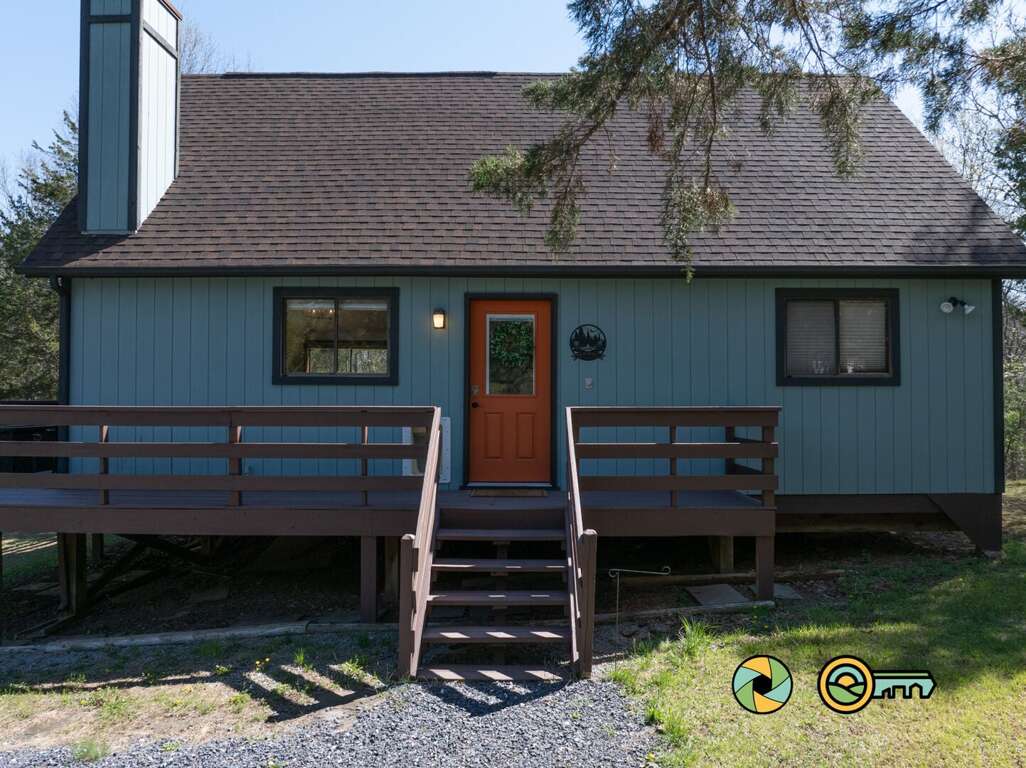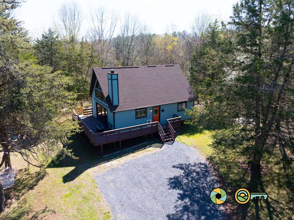 Alpine chalet home on five wooded acres in Basye, VA, with a hot tub, decks, and a wood-burning fireplace; a quiet place to stay near Bryce Resort skiing, golf, and Lake Laura.