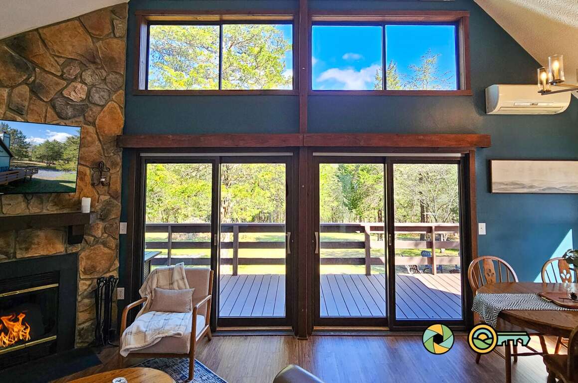 R&R Chalet is a restored alpine chalet on five acres nestled in Shenandoah County's western mountains. The chalet sits on a one acre home site with an extensive lawn accentuated by well-groomed mature cedar trees. The extensive lawn provides ample space for outdoor activities and the remaining four wooded acres invite exploration and connection with nature. The woods create a private outdoor living space with a large platform deck, hot tub, gas grill, outdoor dining, and corn hole. The large fire pit invites casual conversations and tall tales in the comfort of Adirondack chairs. Inside, the great room’s huge glass doors, windows, and deck create the sense being outside, even when while cozy inside. Access to R&R Chalet is just six steps up to entry level, which makes for easy unpacking and a quick transition to R&R.<br />