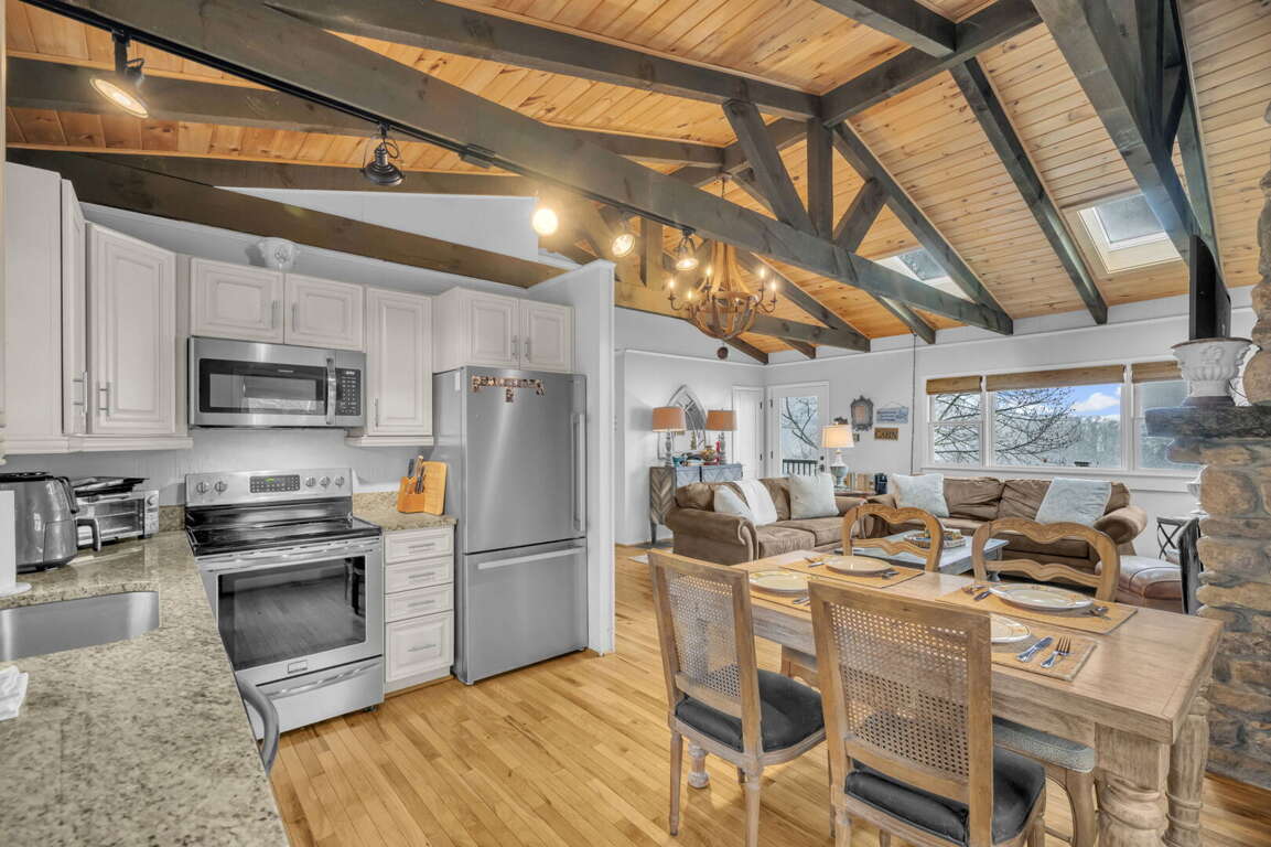 The Cloud Forest Lane Getaway in Blowing Rock, NC offers a range of amenities and features that ensure a comfortable and enjoyable stay for guests. To start, the vacation home is located near a variety of top-rated restaurants, allowing guests to indulge in delicious meals without having to travel far. Additionally, the surrounding area offers numerous outdoor recreational activities such as hiking, biking, and fishing, providing ample opportunities for guests to explore and enjoy the natural beauty of the region. Inside the home, guests will find a cozy and well-appointed living space, with two bedrooms that can accommodate up to four people. The full bathroom ensures convenience and comfort, while the 936 sqft of living space provides plenty of room to relax and unwind.