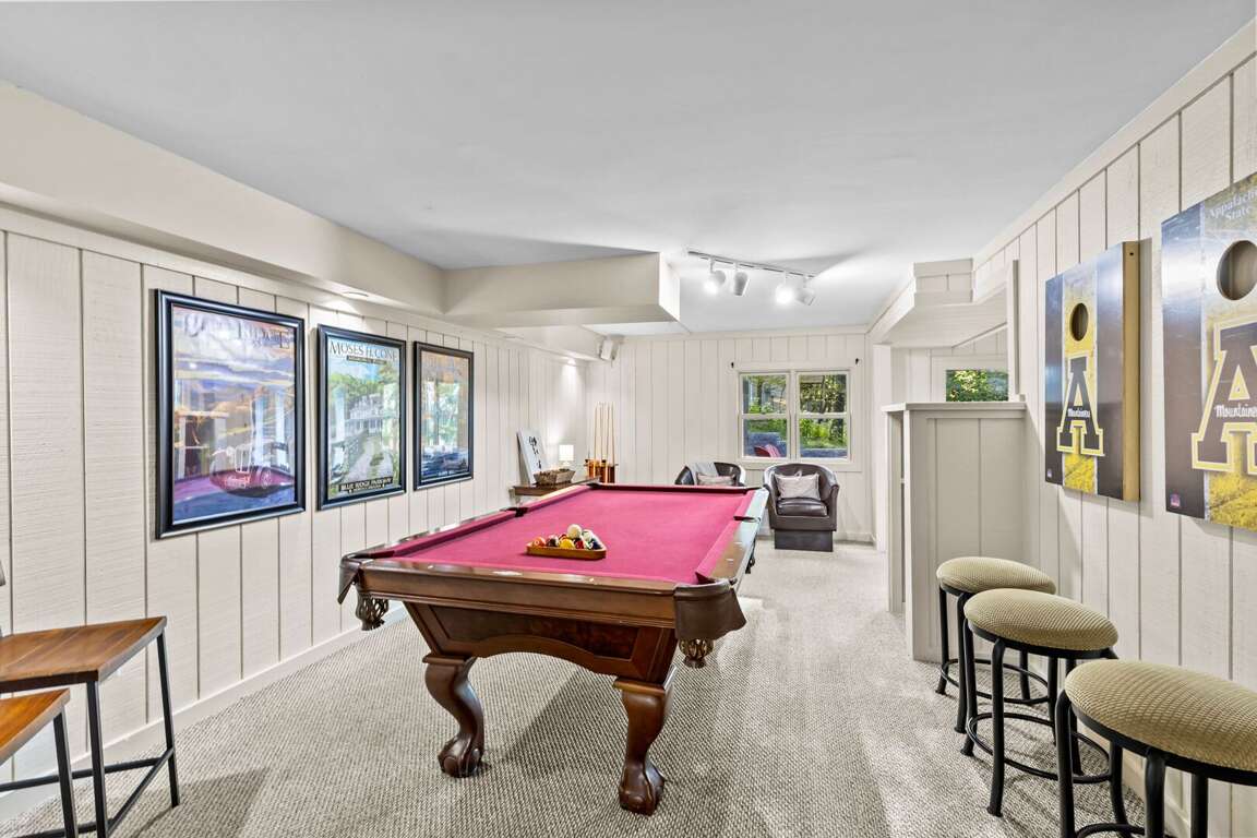 Featuring a range of luxurious amenities, the Longview Lodge offers guests a truly exceptional retreat in the high country of Boone, North Carolina. This stunning property provides the perfect setting for a relaxation retreat, allowing guests to unwind and soak in the peacefulness and tranquility of the surroundings. The well-appointed living room with its comfortable leather sofas and cozy gas log fireplace creates a warm and inviting atmosphere. The fully-equipped kitchen and formal dining room provide all the necessary amenities for preparing and enjoying delicious meals. For those seeking an entertainment extravaganza, the lodge offers a separate retreat on the lower level with a second kitchen and a game room. Guests can indulge in friendly competition or simply relax and enjoy the various outdoor activities available, such as the two-story deck with seating and mountain views, the hot tub for six people, and the fire pit for cozy evenings. With these exceptional amenities, the Longview Lodge truly offers a luxurious and unforgettable experience for all guests.