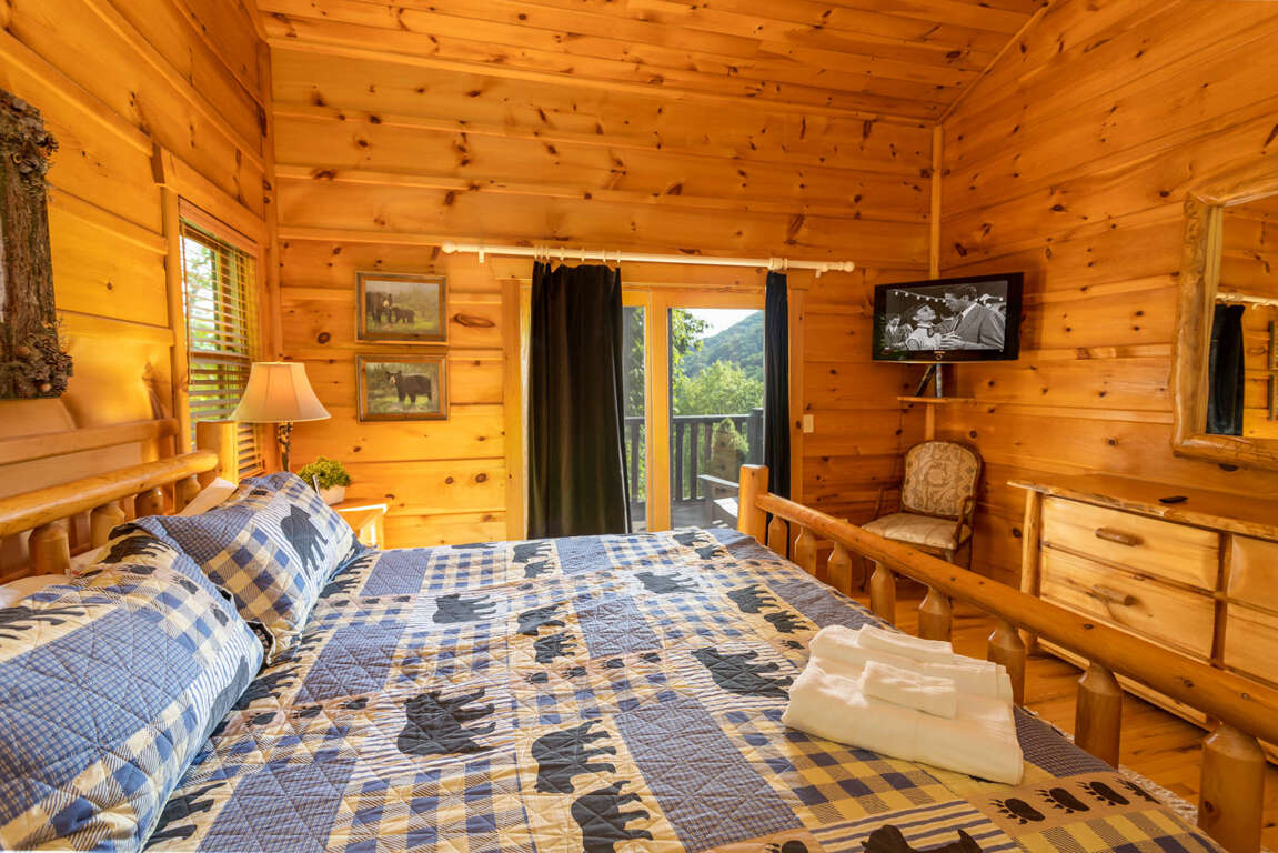 King Master Suite with Wall of Windows framing Mountain Views