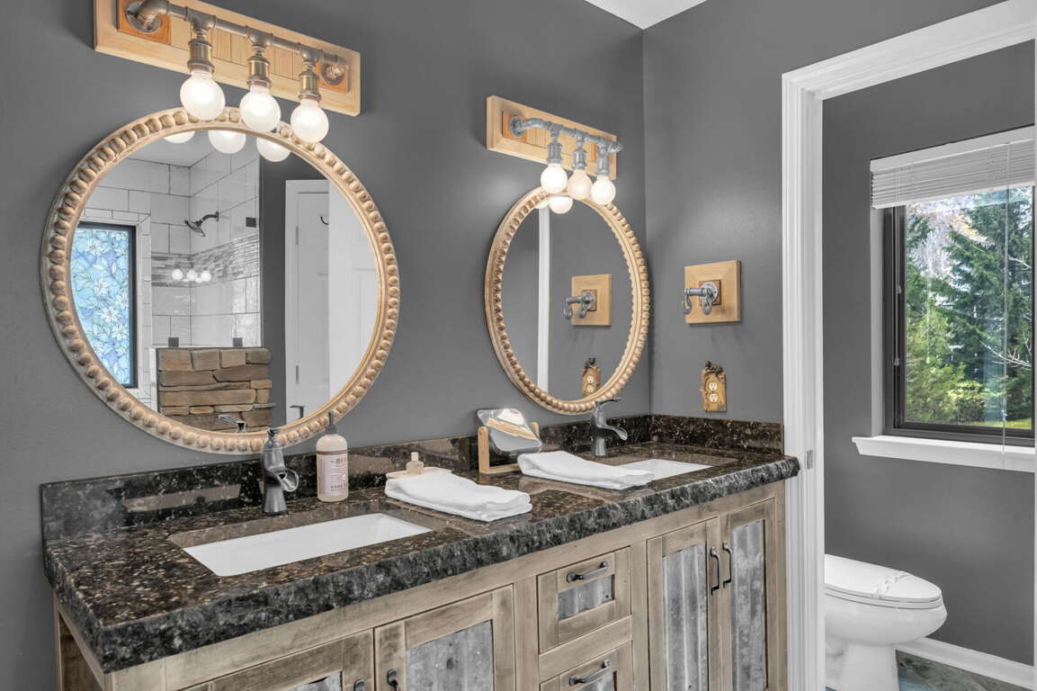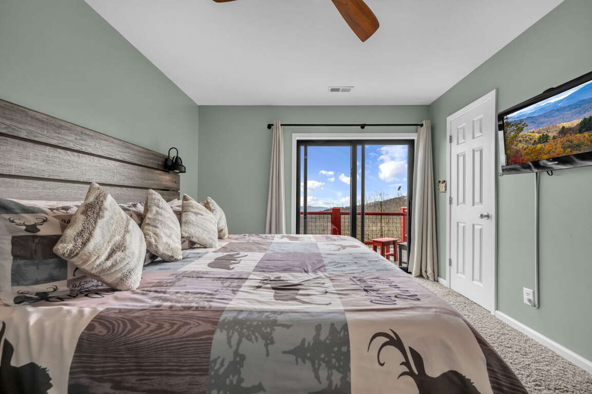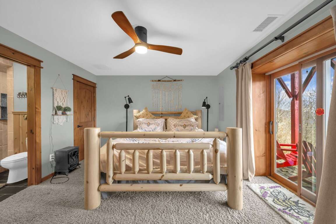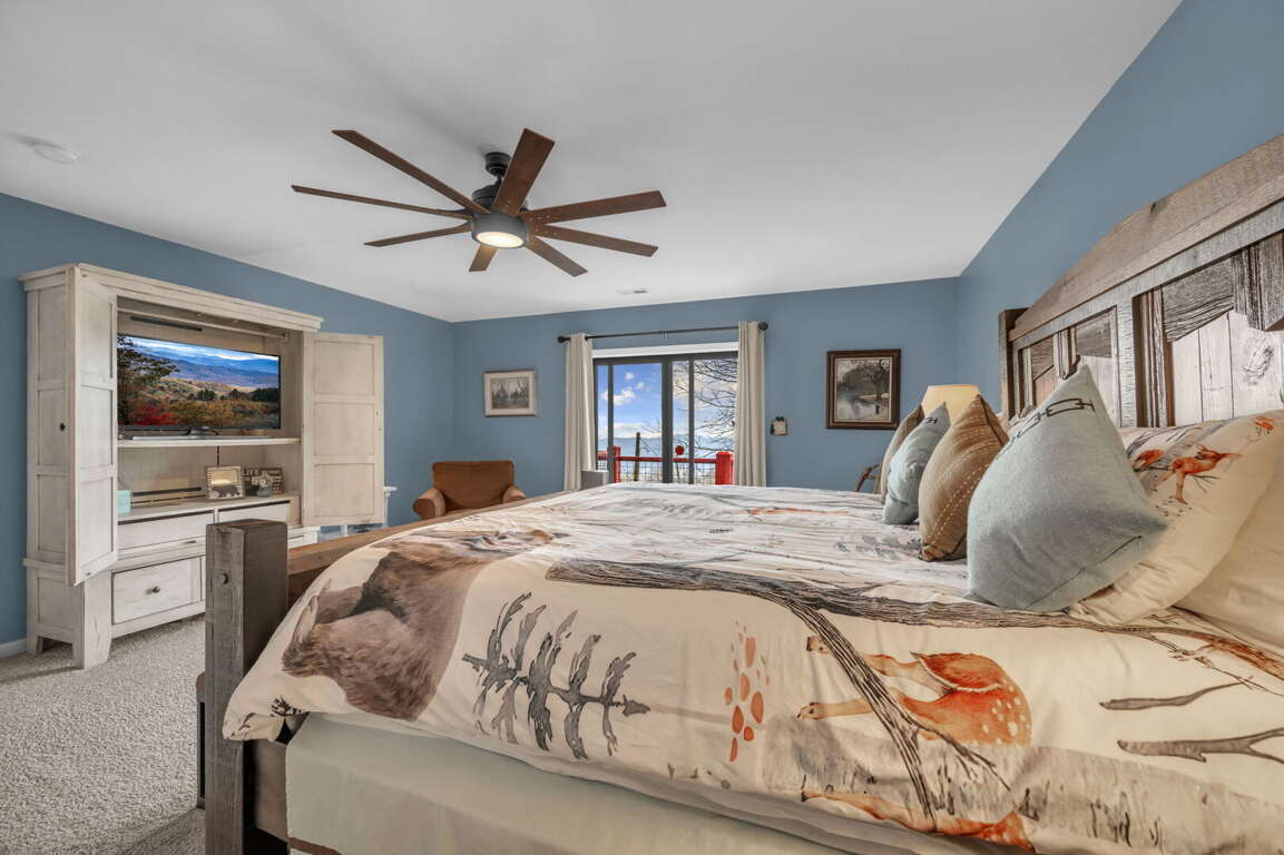 Nestled within the breathtaking Dream Vacation House in Seven Devils, NC, the Master Suite and Additional Bedrooms offer luxurious accommodations for a restful and rejuvenating stay. The Master Suite is a haven of comfort and style, featuring a king-size bed and HD Smart TV for your entertainment. The decor is elegant and tastefully designed, creating a serene atmosphere to unwind in. Glass doors open up to the main deck, allowing you to enjoy the stunning mountain views from the comfort of your own room. The Master Bathroom is equally impressive, with a vanity adorned with granite counters, his-and-her sinks, and a large tiled shower with frameless glass.