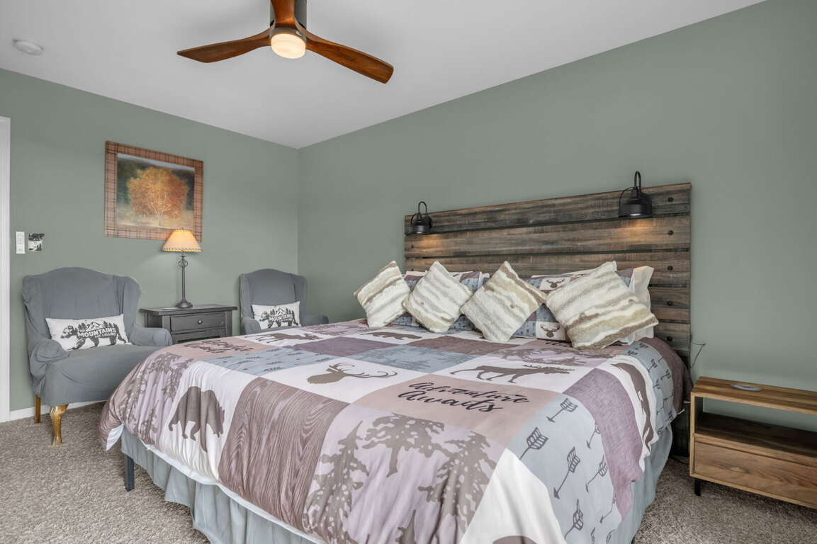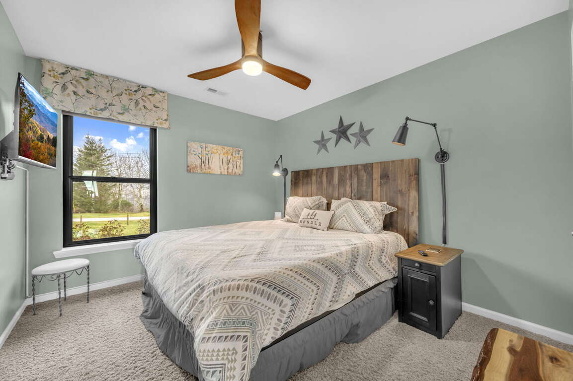The dream vacation house in Seven Devils, NC offers an array of comfortable and well-appointed bedrooms and bathrooms for a truly relaxing and rejuvenating stay. Each bedroom in the Ace of Diamonds house is thoughtfully designed with attention to detail and stylish decor. The Master Suite features a king-size bed, HD Smart TV, and glass doors that lead to the main deck, allowing guests to wake up to stunning mountain views. The Master Bathroom boasts a sleek bathroom design with a vanity featuring granite counters, his-and-her sinks, a private water closet, and a spacious tiled shower with frameless glass. The additional King Bedrooms also come with full bathrooms, one even having an HD Smart TV and access to the rear patio. For larger groups, the loft can accommodate three people, while the lower level bedroom offers a king-size bed, HD Smart TV, and an adjacent custom-designed full bathroom. With its carefully chosen bedroom decor and luxurious bathroom design, the Ace of Diamonds house provides the perfect sanctuary for rest and relaxation during your dream vacation.