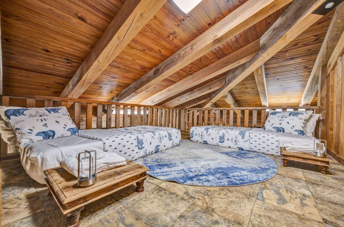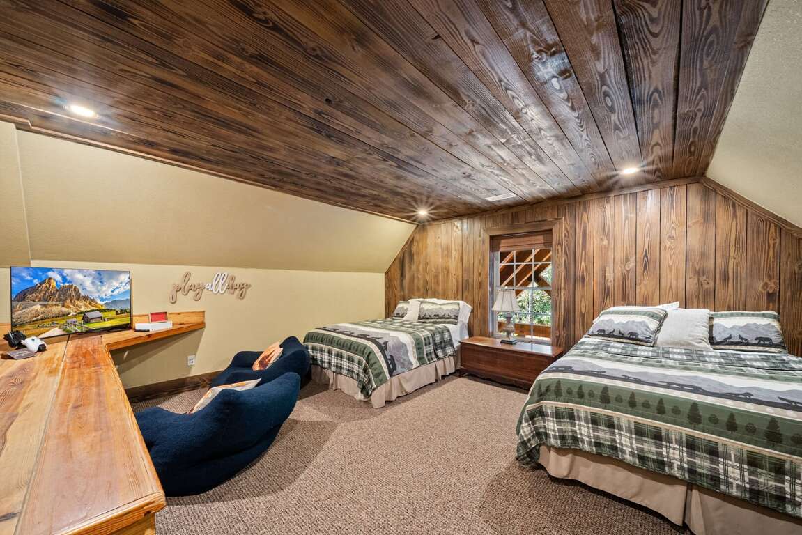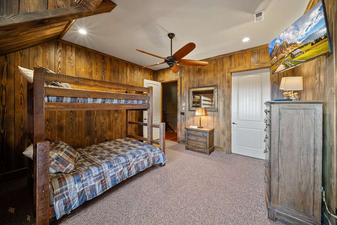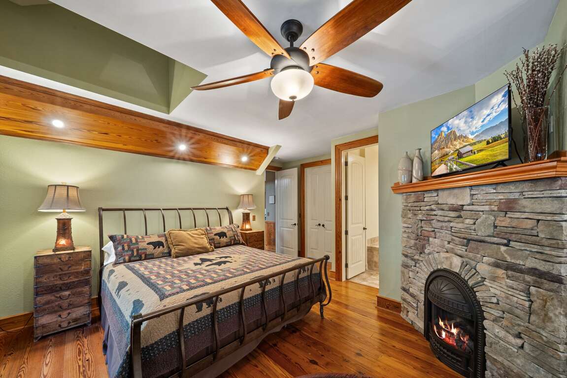 The Renaissance Lodge offers a variety of comfortable and spacious sleeping arrangements to accommodate up to 29 people for a restful and enjoyable stay. On the upper level, you'll find the luxurious Master King Suite, a Queen Bedroom with 2 Queen Beds, a Bunk Room with a Twin Over Full and Twin Over Twin, convertible bean bags, and Roll Away Beds for 4 Twins. The main floor features 2 King Suites and a Queen Room, while the lower level offers a King Suite and a Pull Out Sofa with 2 Fulls. Additionally, there are 2 Twin beds in the loft. It's worth noting that the loft does not have air conditioning. With these sleeping arrangements, guests can relax and rejuvenate after a day of exploring nearby hiking options, such as the Blue Ridge Parkway, Julian Price Memorial Park, and Moses Cone Memorial Park.