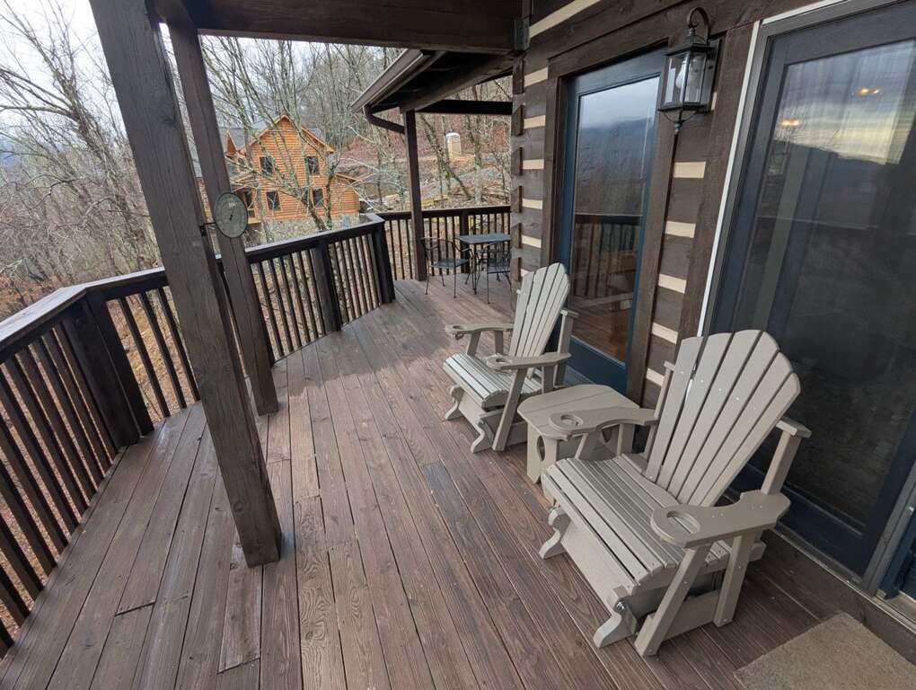 Adirondack chairs: The bunk room in the Bearbnb House Rental is equipped with comfortable Adirondack chairs, providing a cozy and inviting space for guests to relax and read a book or simply enjoy some quiet time. These chairs add a touch of rustic charm to the room and offer a comfortable seating option for guests to unwind and recharge.