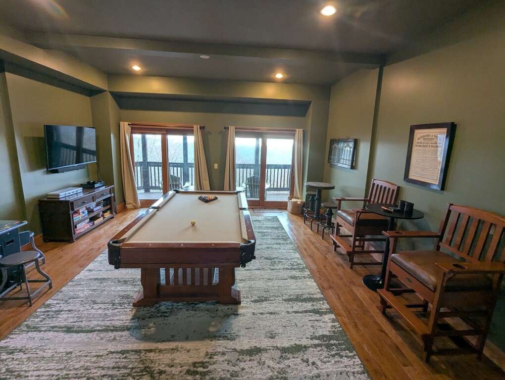 The lower level entertainment area at the Bearbnb House Rental ensures that guests have ample opportunities for fun, relaxation, and bonding during their stay.