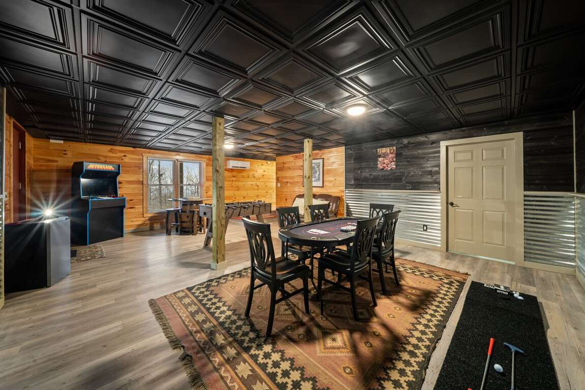 Air Conditioning: Central, Mountain Views, Long Range Views, Fire Pit/Fire Table, Covered Porch, Deck, Tennis - Public (Boone Rec Center), Golf - Public (Boone Golf Club), Arcade Game, Putting Green, Dining Seats: 6, Kitchen: Yes, Cook Top, Dogs Allowed, No Smoking Allowed, Parking: 3 Cars, Appalachian Ski Mountain (20+ Minute Drive), Beech Mountain Resort (20+ Minutes Drive), Sugar Mountain Resort (20+ Minute Drive), Moderate Cancellation PolicyWelcome to the Perfect View Cabin, a tranquil getaway nestled in the charming town of Boone, North Carolina. This inviting cabin offers four spacious bedrooms and comfortably accommodates up to 12 guests, making it an ideal choice for those seeking a retreat with loved ones. With its breathtaking panoramic views of the Appalachian Mountains, the Perfect View Cabin provides a picturesque backdrop for your stay. Inside, you'll find a warm and rustic interior, complete with wood floors and vaulted ceilings. The cabin offers a range of amenities, including a loft with four twin beds, smart TVs with streaming capabilities, and a covered deck where you can soak in the fresh mountain air. As you plan your visit, please note that an all-wheel drive or four-wheel drive vehicle is recommended due to the steep gravel driveway. Stay tuned to discover more about the nearby attractions, cabin description, important information, and how to make a reservation.