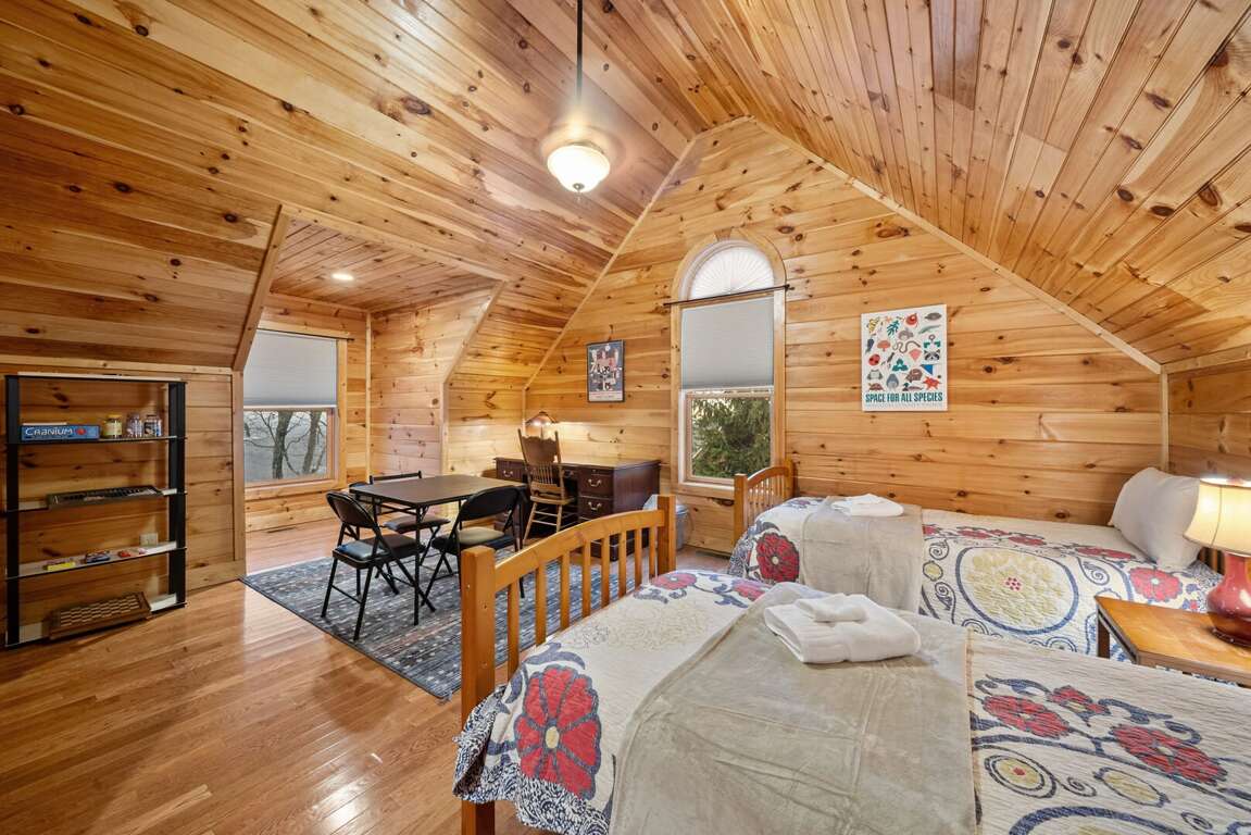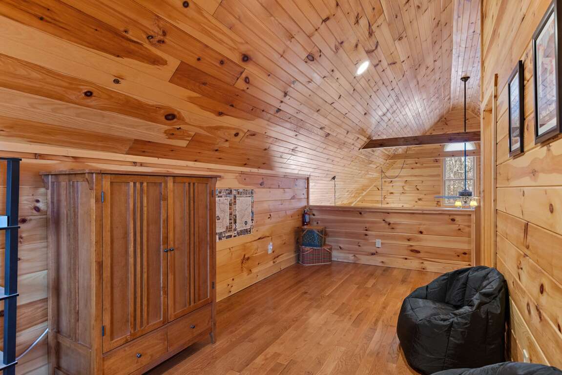 The cabin offers a spacious loft upstairs with ample sleeping and lounging space, making it perfect for families or larger groups. The loft is a great place for entertainment, with a TV, bean bag chairs, and an office desk. Whether you want to watch a movie, play games, or catch up on work, the loft provides a comfortable and versatile space for everyone to enjoy. Additionally, the cabin is well-prepared for winter weather with necessary precautions in place. AWD or 4-wheel drive, tire chains, and an experienced driver are required during the winter months. This ensures that guests can safely access and enjoy the cabin even in snowy conditions. With its loft entertainment options and winter weather precautions, the Perfect View Cabin offers a truly exceptional experience for guests.
