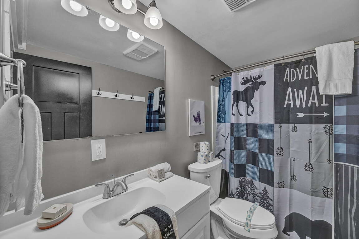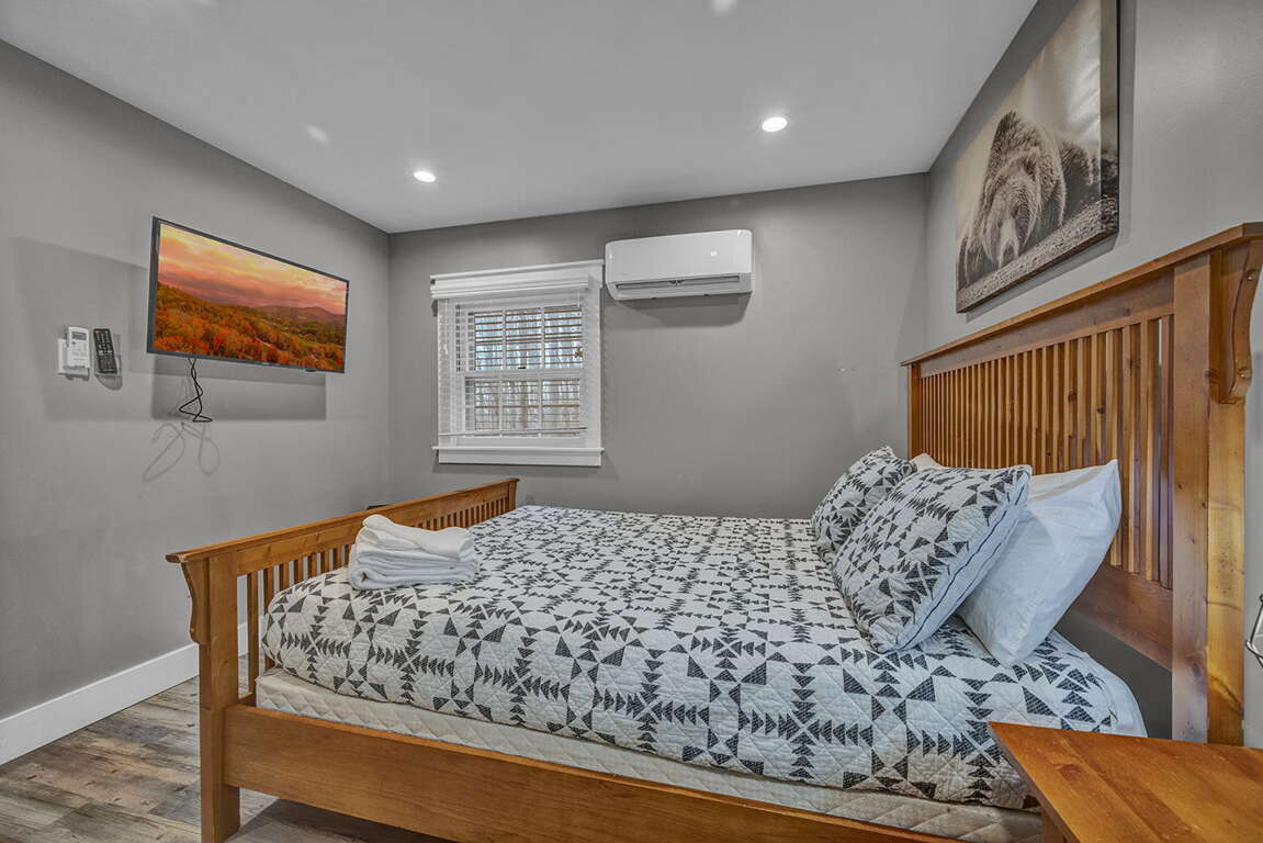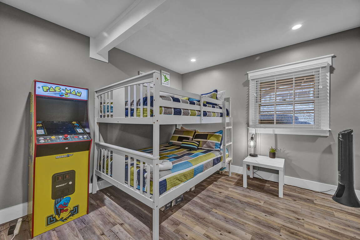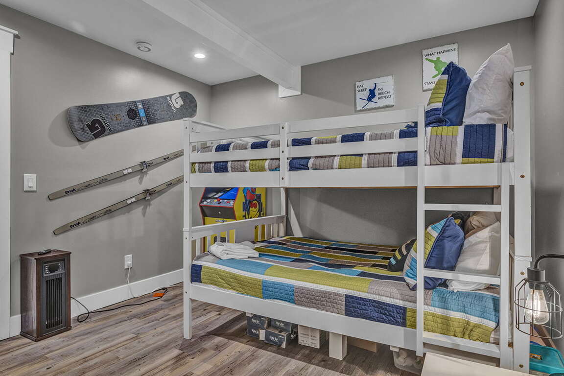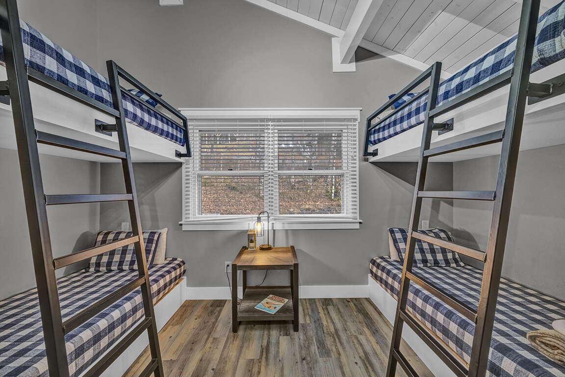 The Bluebeary Bungalow offers comfortable and well-appointed sleeping arrangements for guests to enjoy during their stay in Beech Mountain, NC. With 4 bedrooms and the ability to sleep 10 guests, this vacation home is perfect for large groups or families looking for a spacious and convenient place to stay. The bed configurations are thoughtfully designed to accommodate different sleeping preferences, ensuring everyone can have a restful night's sleep. The main level features a queen-sized room with a Smart TV, perfect for those who prefer a more private space. Additionally, there is a bunkroom on the main level with four twin beds, ideal for children or friends traveling together. Downstairs, there is another queen-sized room with a Smart TV and a bunkroom with full-over-full bunks, offering flexible sleeping arrangements for guests. The shared bathrooms on both levels ensure convenience and ease for all guests. With these well-planned sleeping arrangements, guests can enjoy a comfortable and rejuvenating stay at the Bluebeary Bungalow.