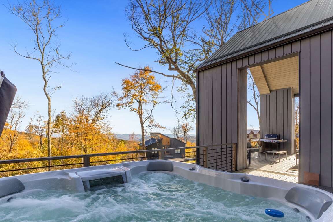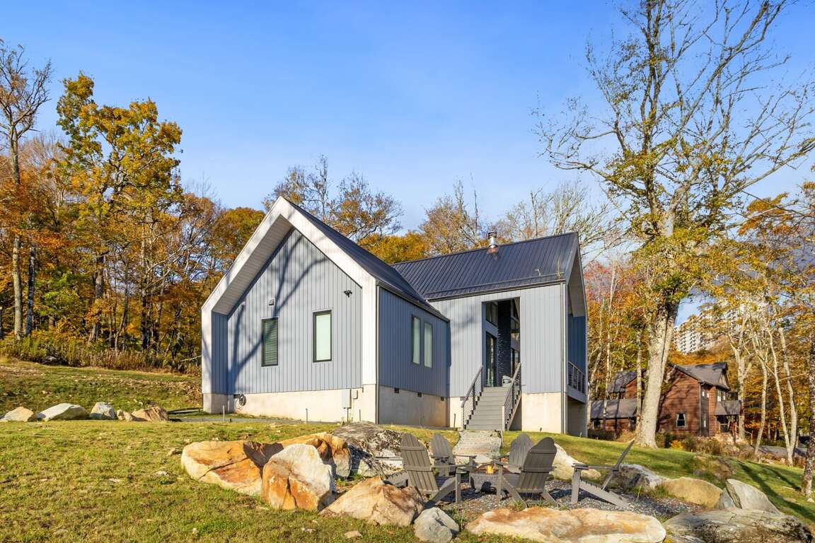 The Bear at Sugar Mountain is a modern custom-built mountain home with Scandinavian influences. Upon entering the home guests are greeted with clean lines, expansive windows, bright white walls, and exposed beams offering a warm and inviting atmosphere. The living space is both elegant and cozy with a sleek floor to ceiling wood-burning fireplace and HDTV. The living room provides a comfortable space to relax after a day of mountain adventures. The cathedral ceiling and natural beams throughout the great room blend the living room and kitchen seamlessly. The gourmet chef’s kitchen has beautiful quartz countertops, state-of-the-art Italian appliances and a coffee bar with wine cooler. The chef in your group is sure to enjoy whipping up a delicious meal at the induction oven to be enjoyed at the nearby dining table. Gather around the large island with a quartz waterfall edge to exchange stories of the day’s explorations. The back deck houses a hot tub where guests can relax after a day on the slopes, or grill out on gas grill while marveling at the mountain views. The fire pit in the lower yard is awaiting your s’mores and campfire stories. The loft off the kitchen is a perfect oasis for the kids to escape to and watch TV on the beanbag chairs.