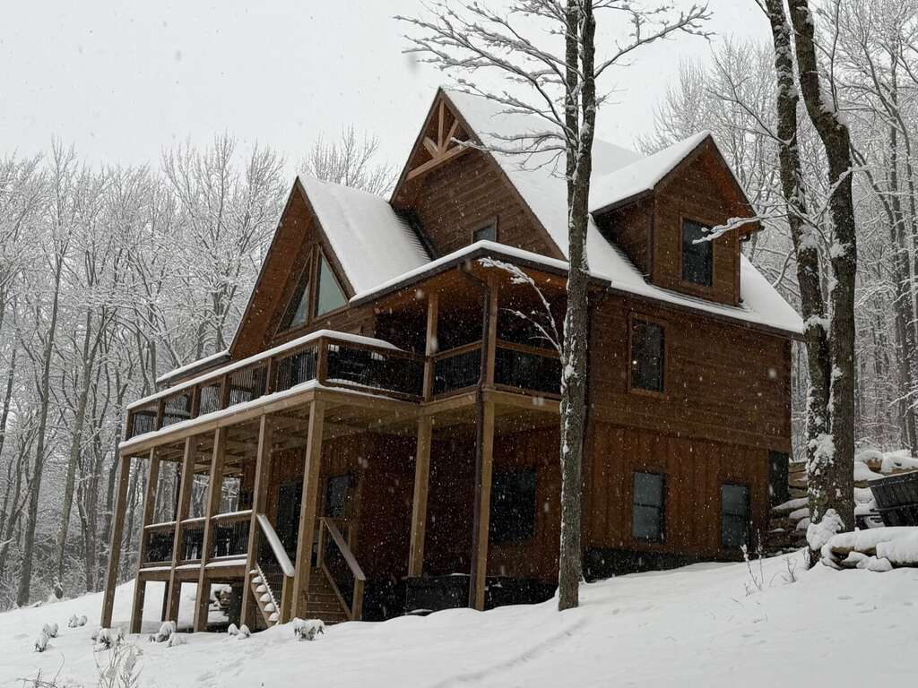 Shawnee Ridge Lodge is a delightful log home that accommodates up to 19 guests, offering a cozy atmosphere with warm, inviting decor and high-quality furnishings. Designed for comfort and relaxation, this spacious retreat provides plenty of room for your entire group to unwind and enjoy. The main level features an open-concept living space with a vaulted wood ceiling, large windows, and a touch of rustic elegance, creating the perfect setting for gatherings. In the evenings, relax in the hot tub, fire up the gas grill for a delicious meal, savor a glass of wine as the sun sets, and cap off your night with S'mores around the fire pit.